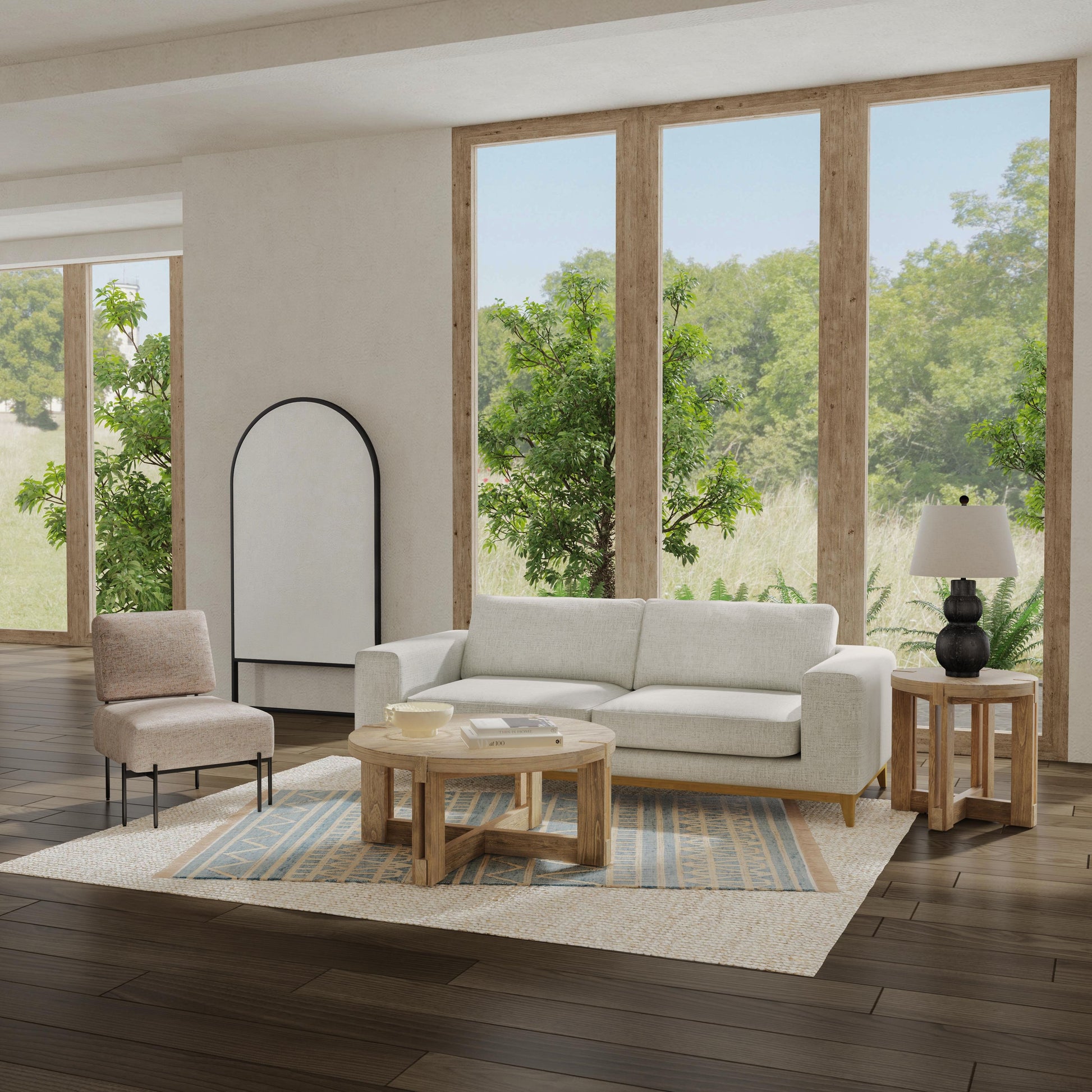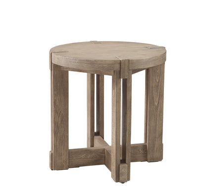 The McGuire End Table seamlessly blends modern rustic farmhouse charm with enduring craftsmanship. Crafted from solid mindi wood in a natural finish. The distinctive interlocking wood beams in the base create an open, airy feel while maintaining a substantial presence. The natural finish adds warmth and authenticity to your surroundings.