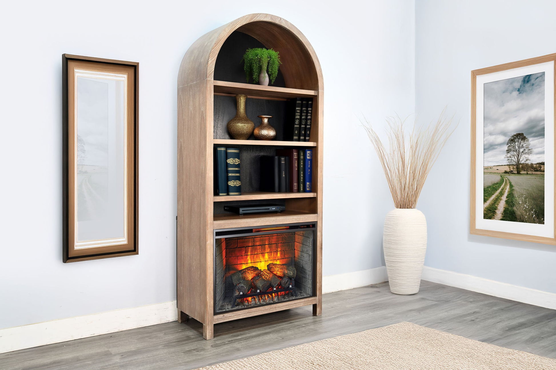 Arched Bookcase With Electric Fireplace - Oak Grove / Umbra