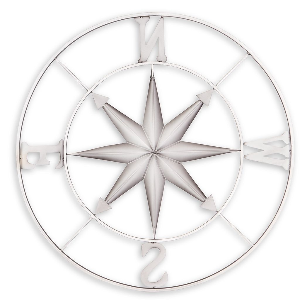 Infuse your space with the farmhouse style of this metal compass wall art. With antiqued gray directional markers and arrow points in a round frame, it adds a casual dimension to your space. Place it in the center of a wall, over a mantel or above a sofa or bed to add a nautical feel anywhere it's displayed.