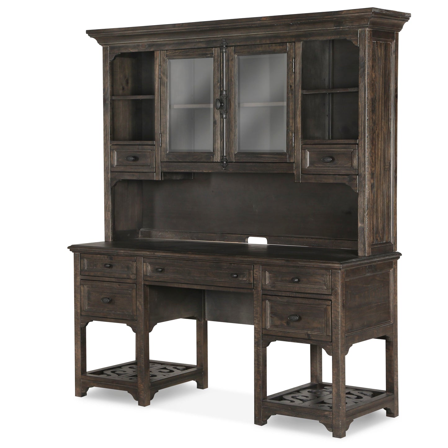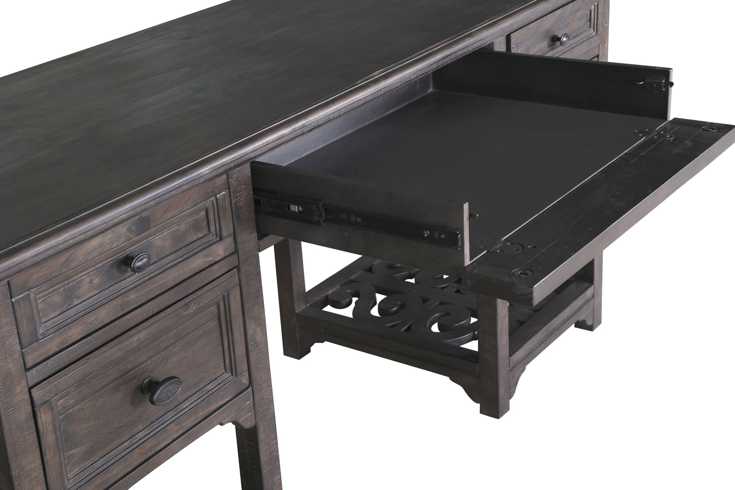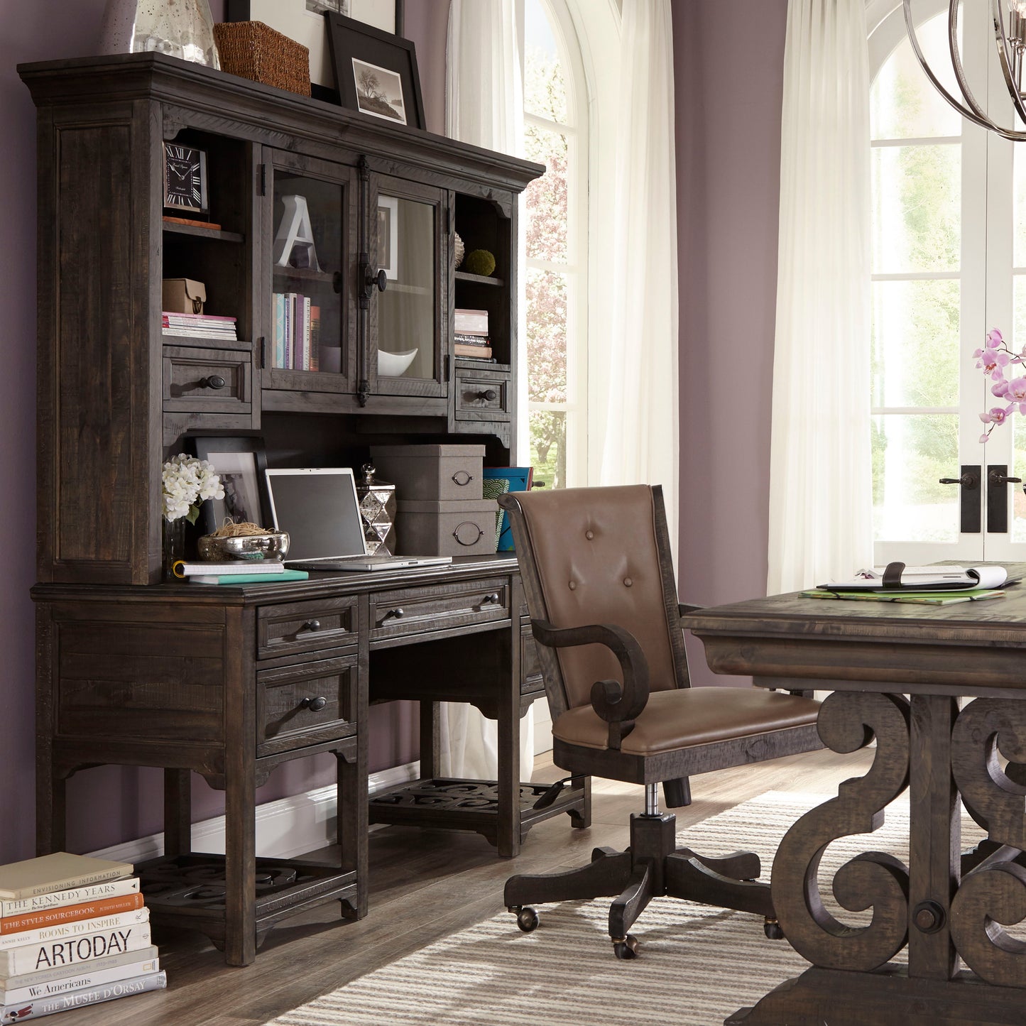 Our classically inspired Bellamy Home Office creates the perfect accent to set the mood for stunning European influenced elegance. Perfectly proportioned to accommodate sprawling school crafts or any work environment, Bellamy maintains its pristine demeanor no matter what the task. Old world charm abounds with pine solids and veneers, matte black with pewter highlights.