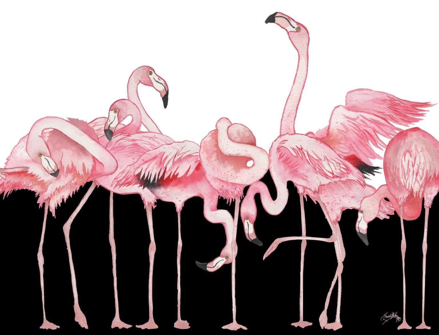 Black And White Meets Flamingos By Elizabeth Medley - Pink