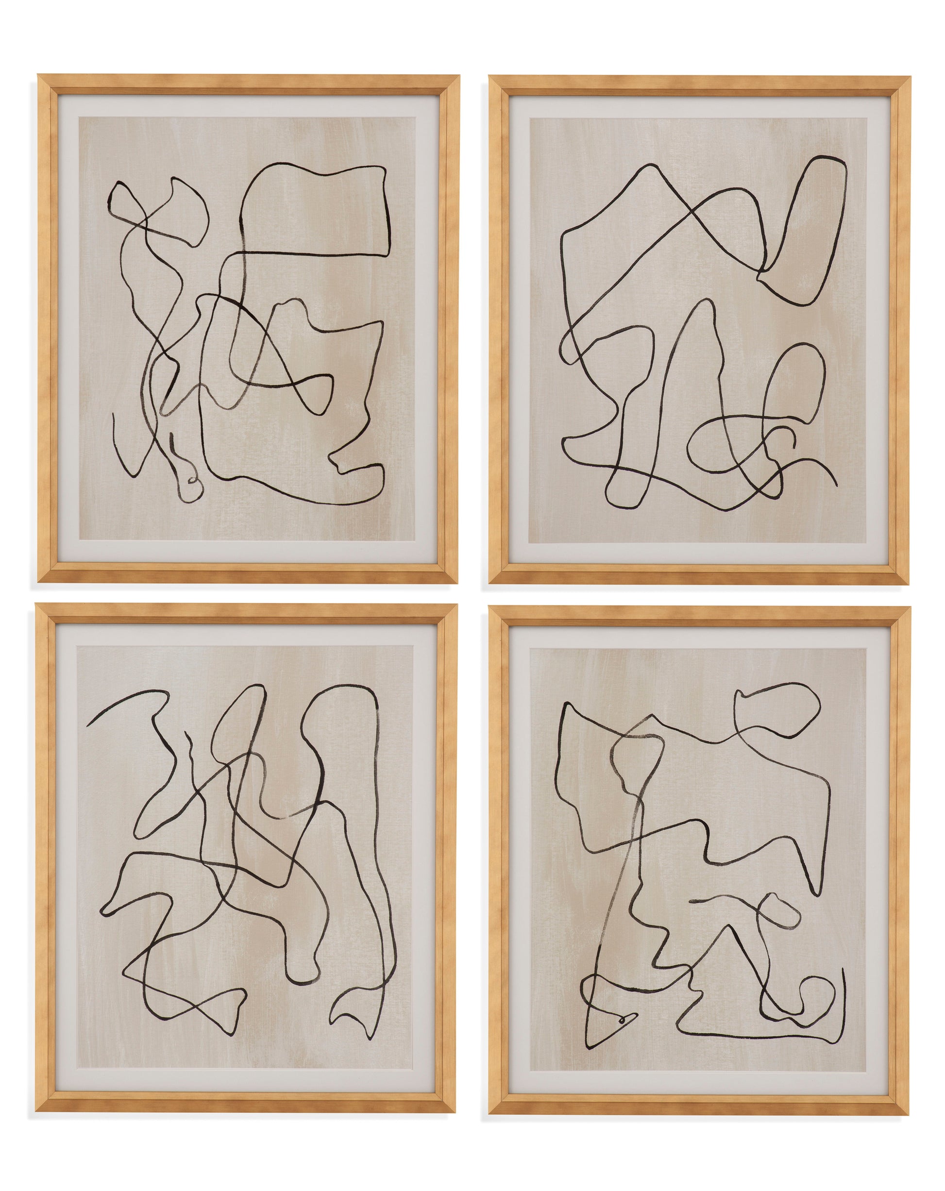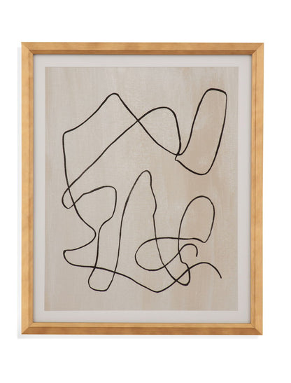 Bound II features abstract ink scribbles on a cream background with white border and a simple natural wood frame.