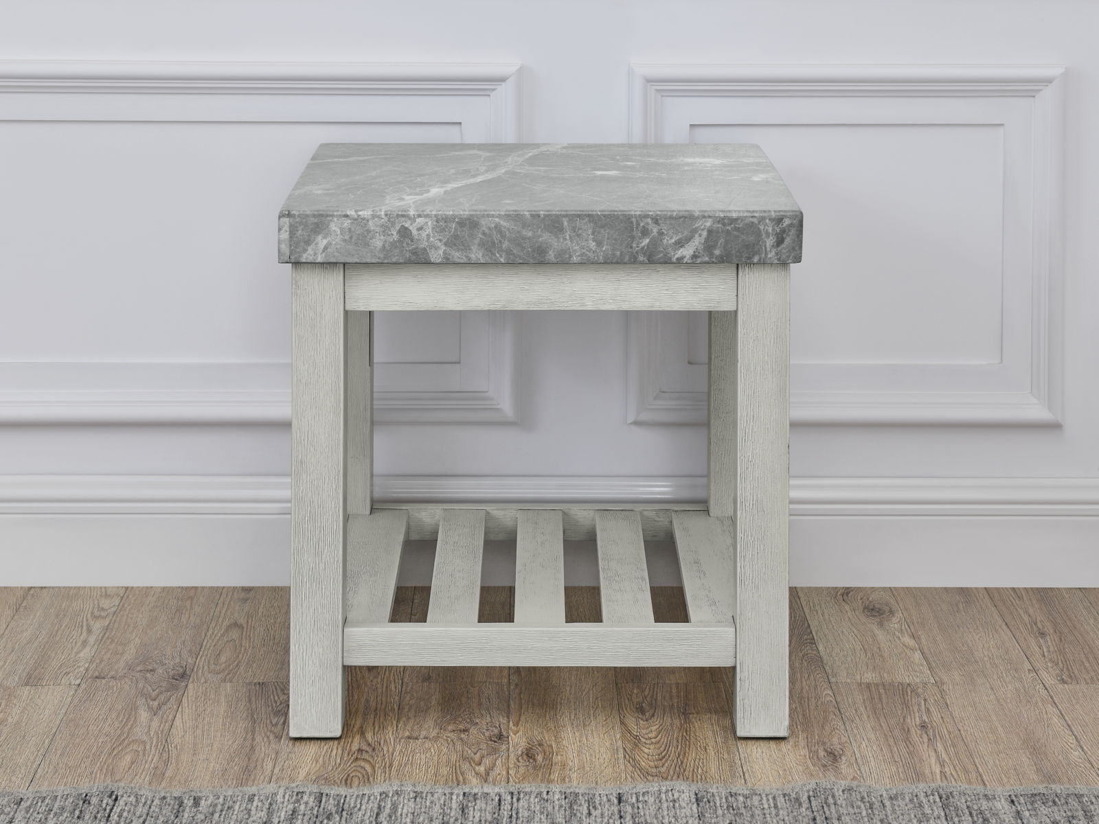 Canova - Gray Marble Top End Table - White