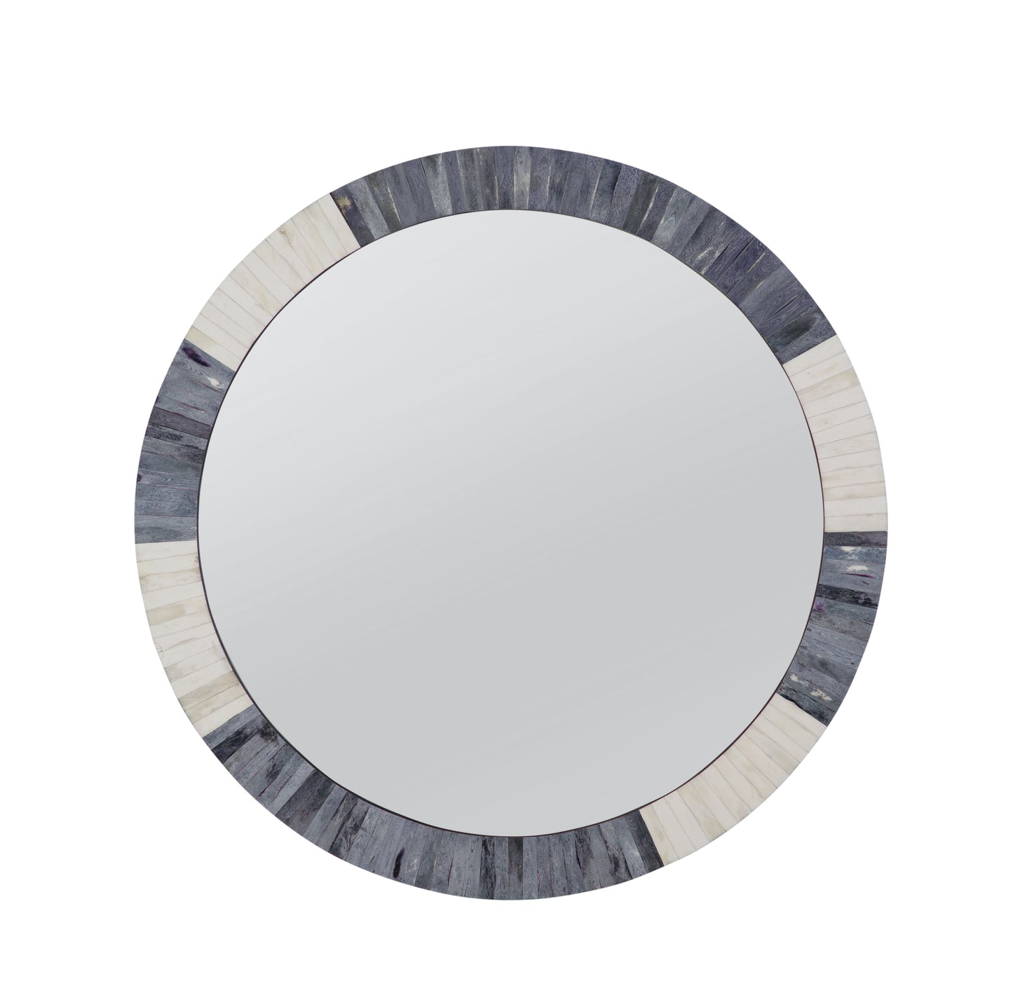 The Carnelian Wall Mirror boasts a round decorative design, blending modern and coastal aesthetics seamlessly. Crafted with natural and gray bone finishes, its versatile style adds elegance to any space. Elevate your decor effortlessly with this stylish and timeless mirror.