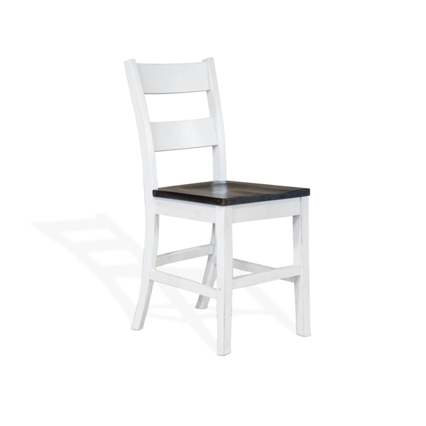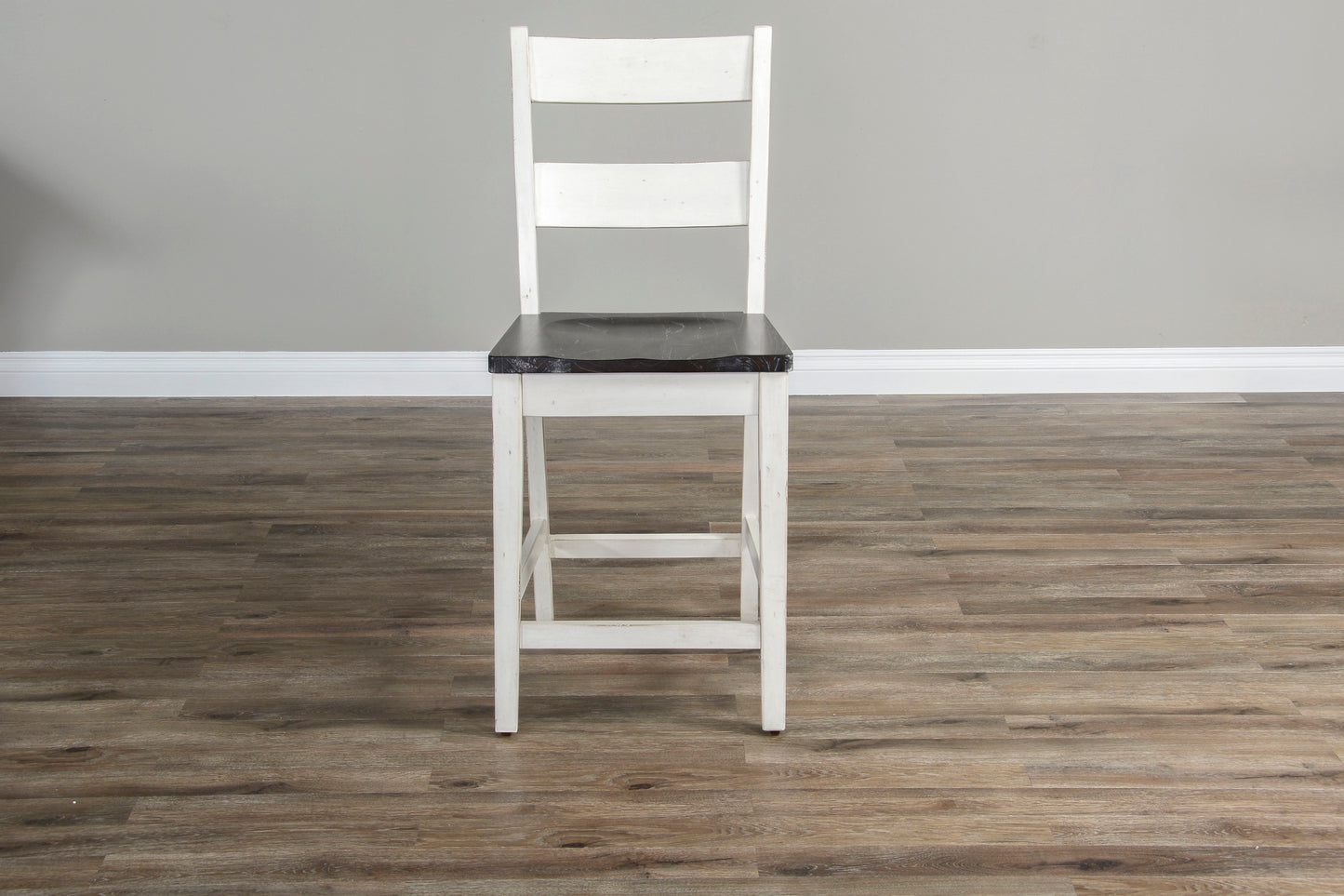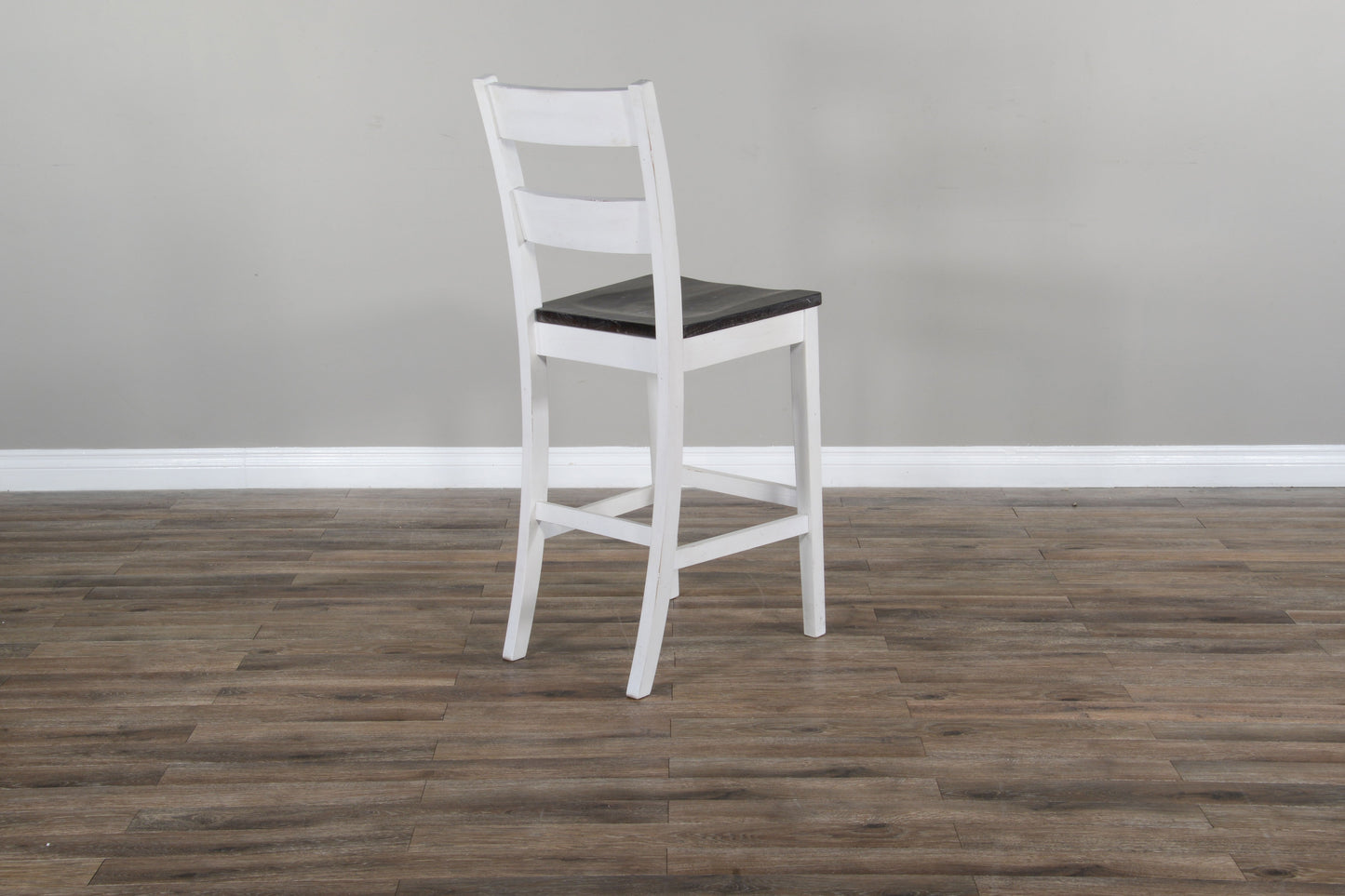 Carriage House - Ladderback Barstool With Wood Seat - White / Dark Brown