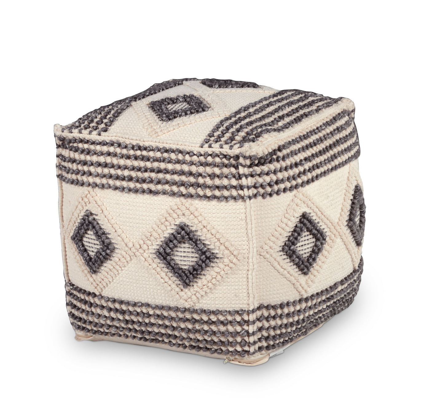 Dalia - Square Handwoven Woolen Pouf - Beige