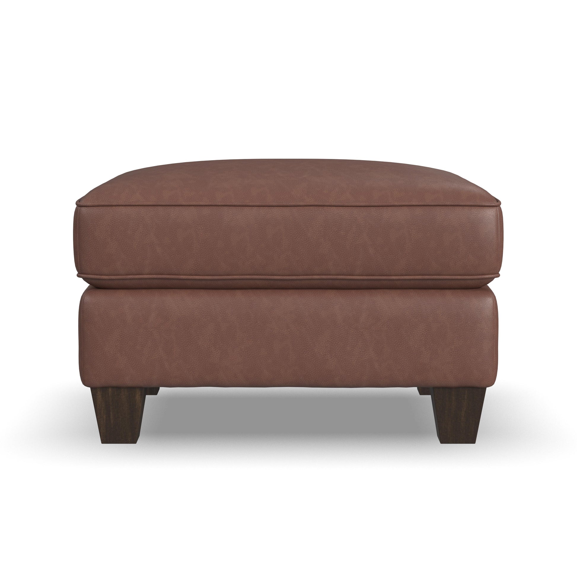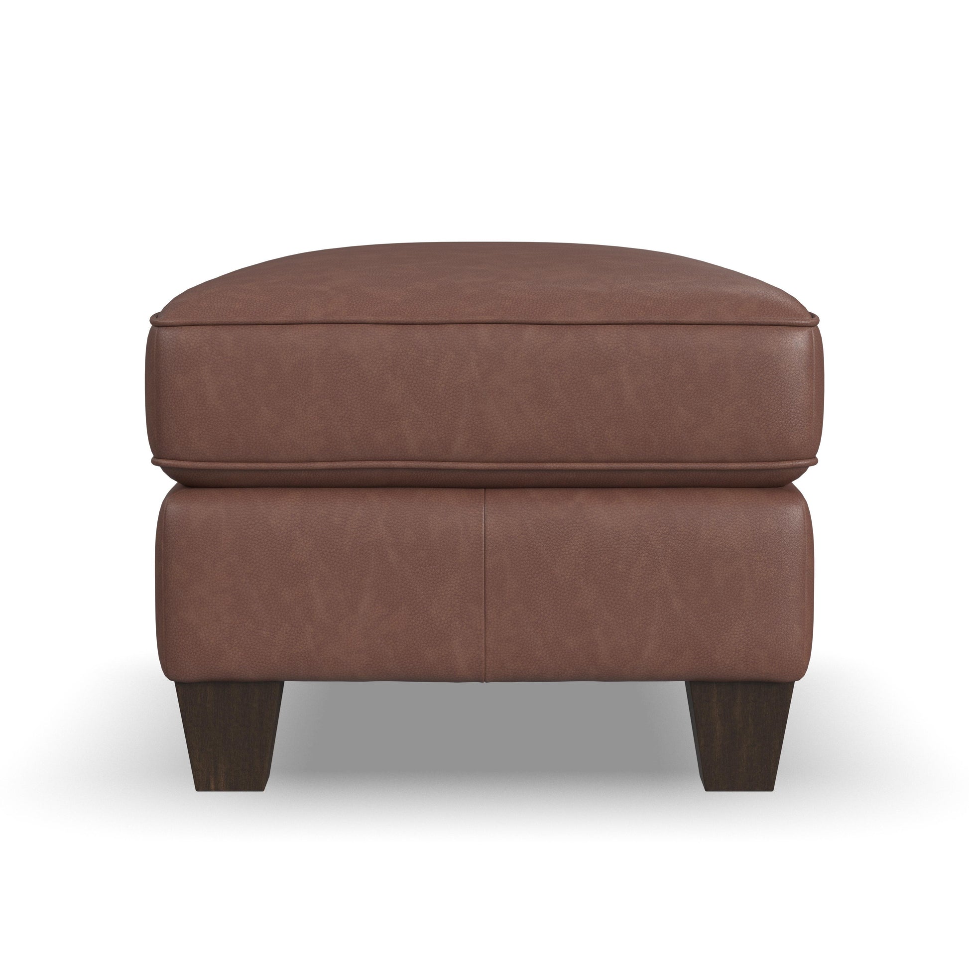 Hearty and Inviting. Kick up your feet on the timeless elegance of the Dempsey ottoman. The perfect companion to the Dempsey collection, this ottoman can be customized with leather upholstery and wood finish options to elevate your living space.