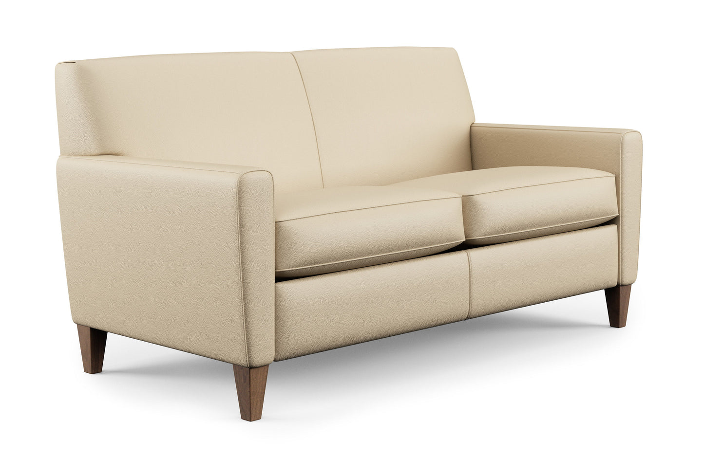 Refined looks in an unassuming frame. Slim tapered arms and a tightly padded back make Digby feel roomy even in smaller areas. Its exclamation-point arm is finished with a tall tapered leg to add visual height, and the tight back enhances the architectural feel of this style while offering surprising comfort.