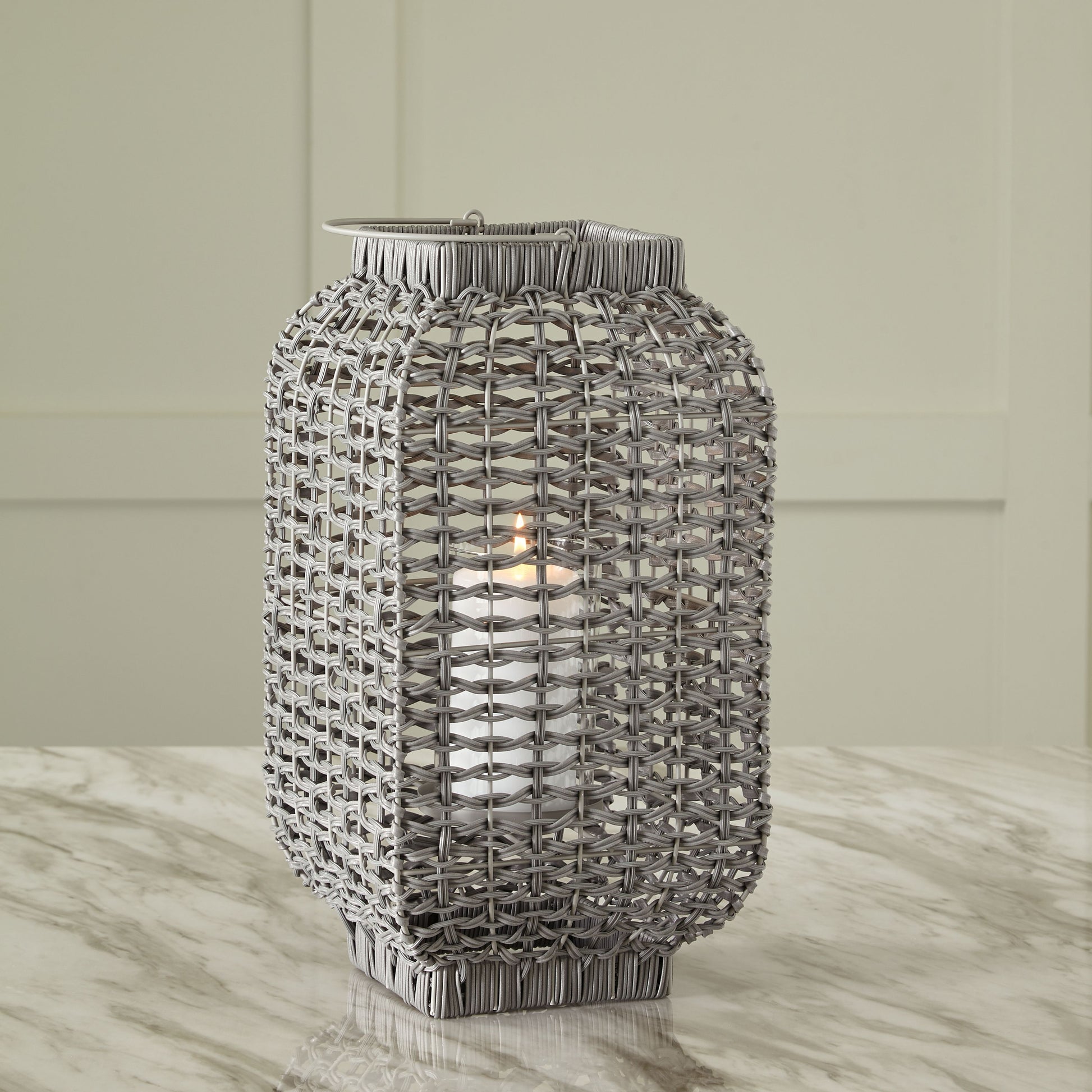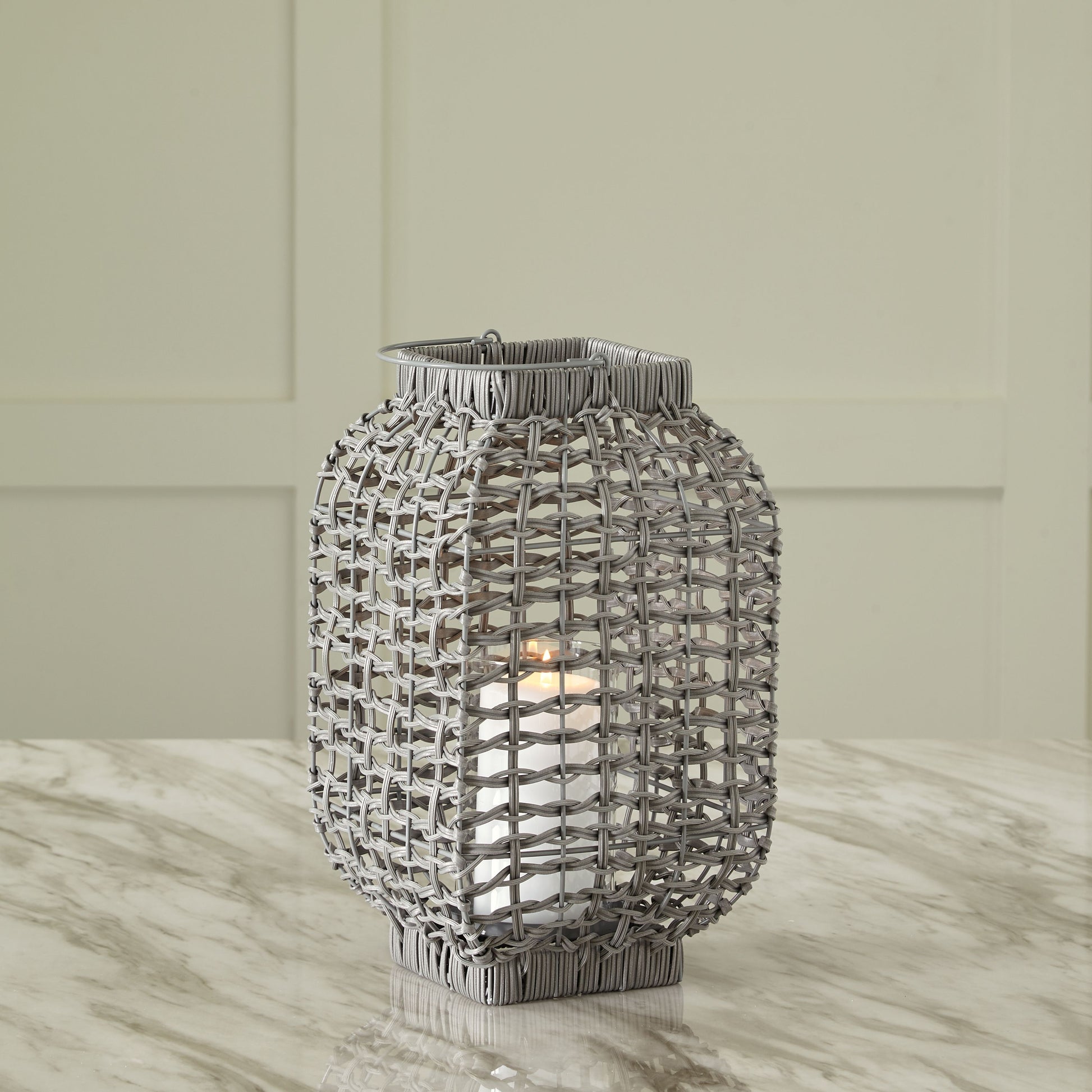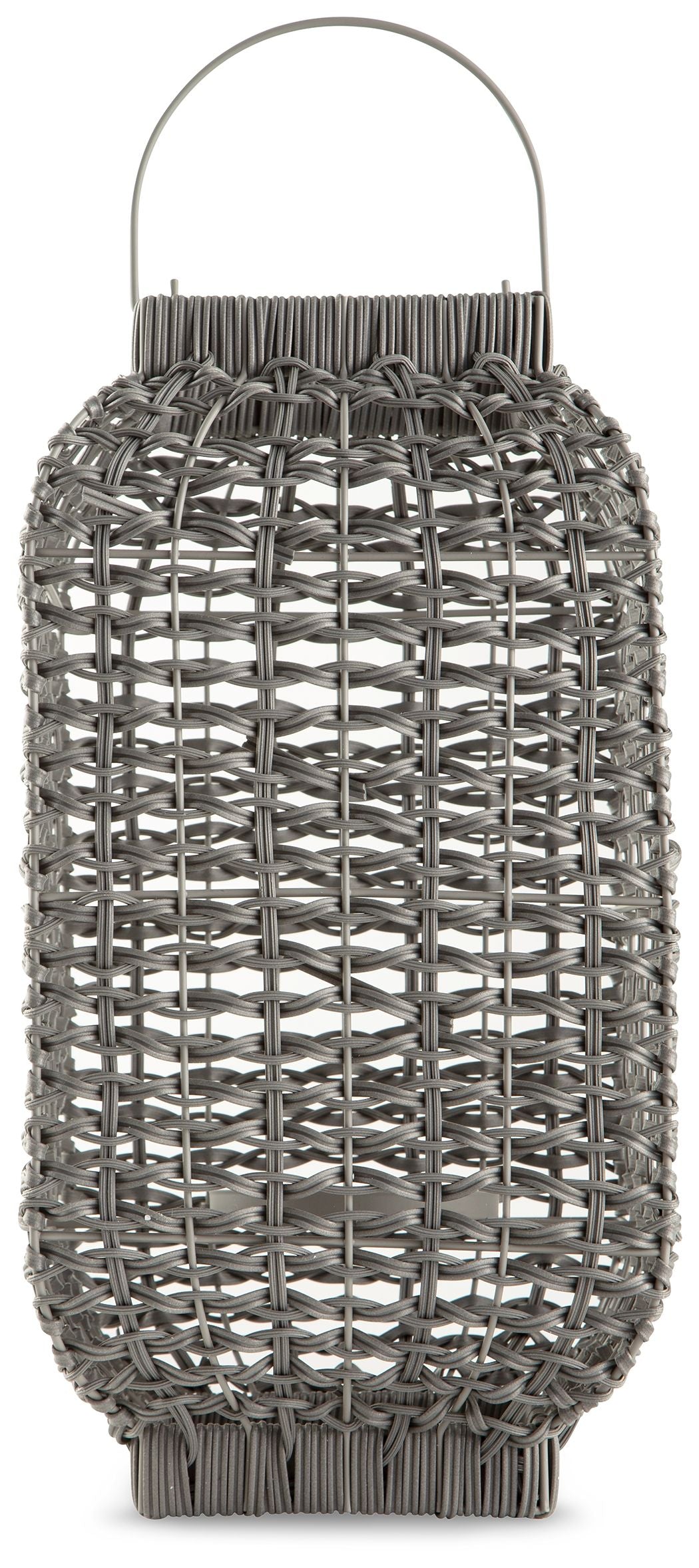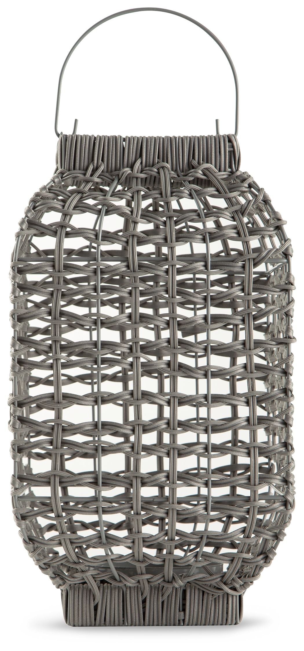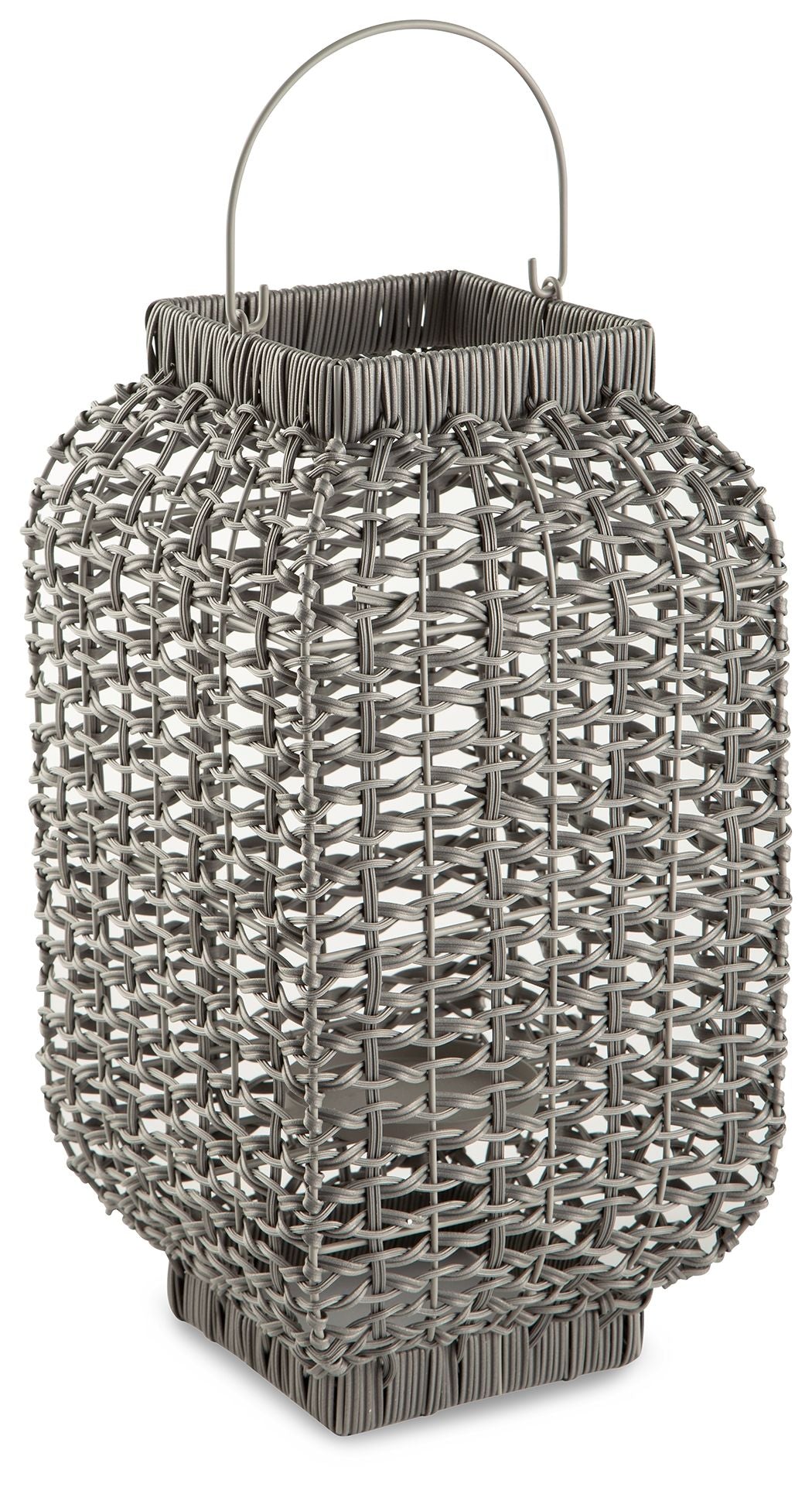 Complete the look of your restful retreat with this homey lantern. Its antiqued gray faux rattan filters the light of your candle (not included) to give a gentle glow to your space. When not in use, this chic indoor/outdoor piece rounds out your decor with its versatile style.