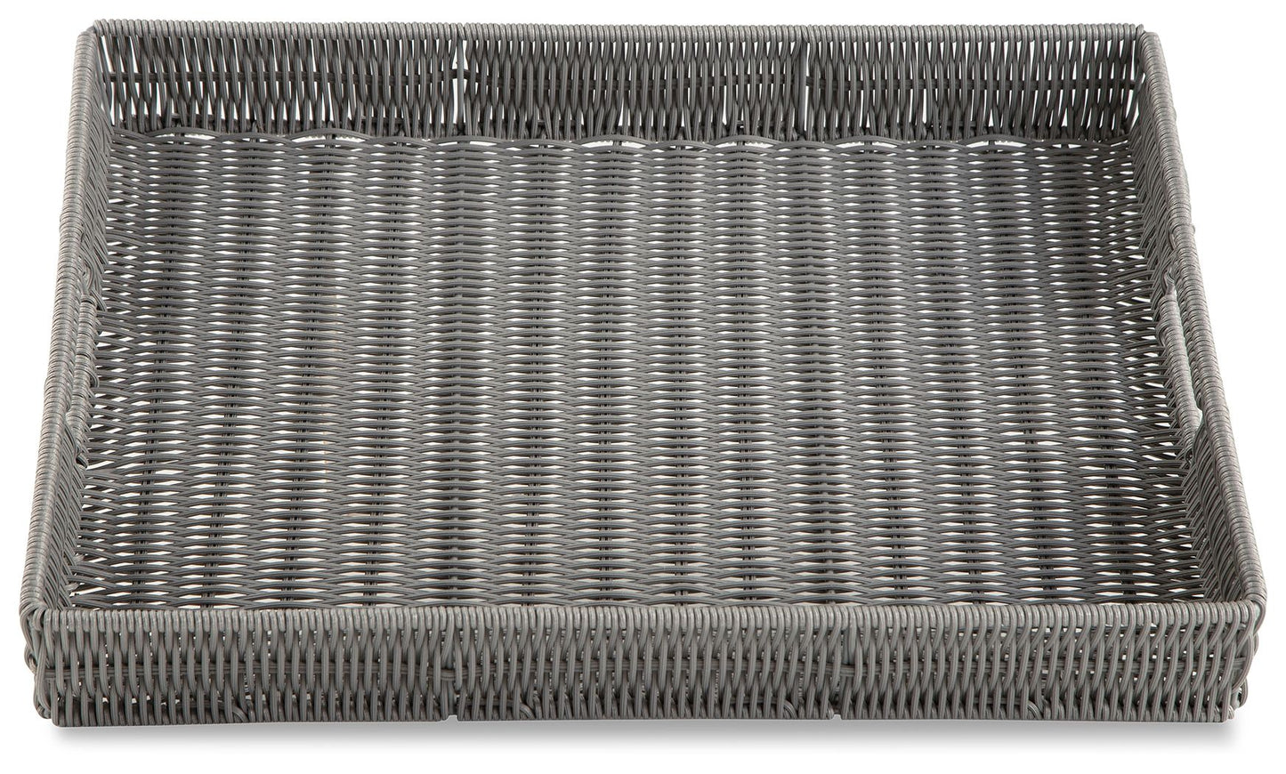 Complete the look of your restful retreat with this homey tray. Its black faux rattan acts as a versatile backdrop while holding other decorative elements. On its own, this chic indoor/outdoor piece punctuates your tabletop decor with its versatile style.