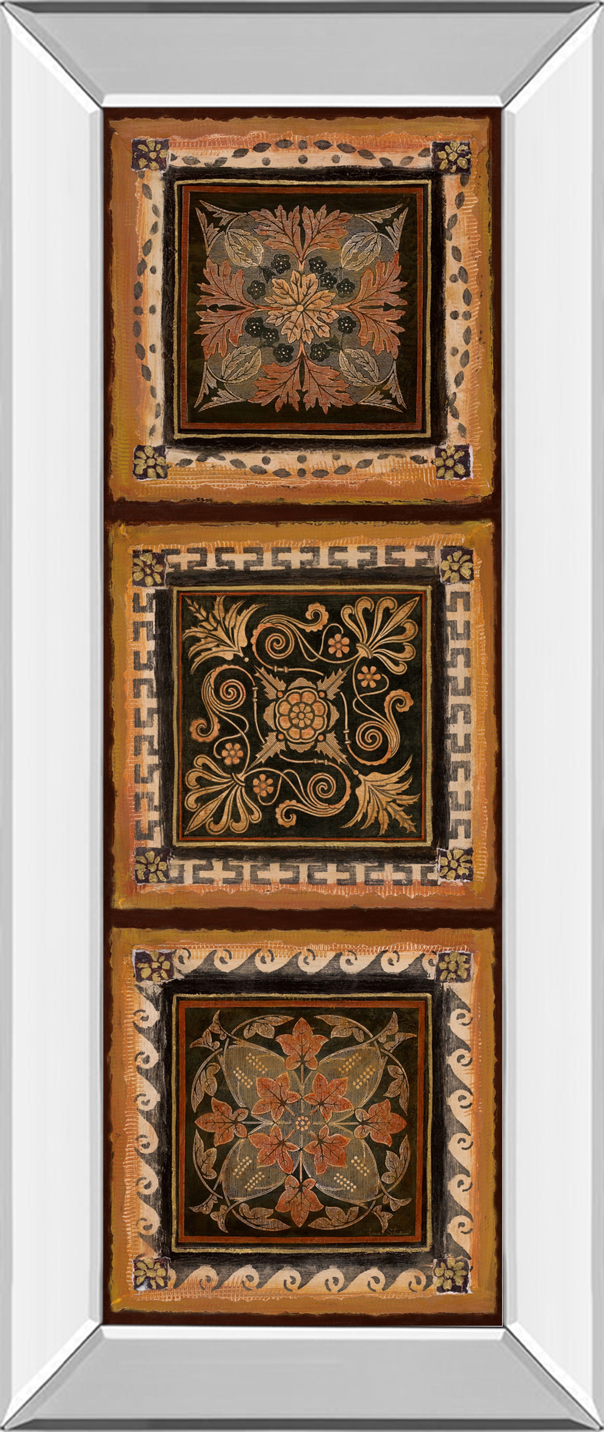 Folk Art Panel Il By Tava Studios - Mirror Framed Print Wall Art - Dark Brown
