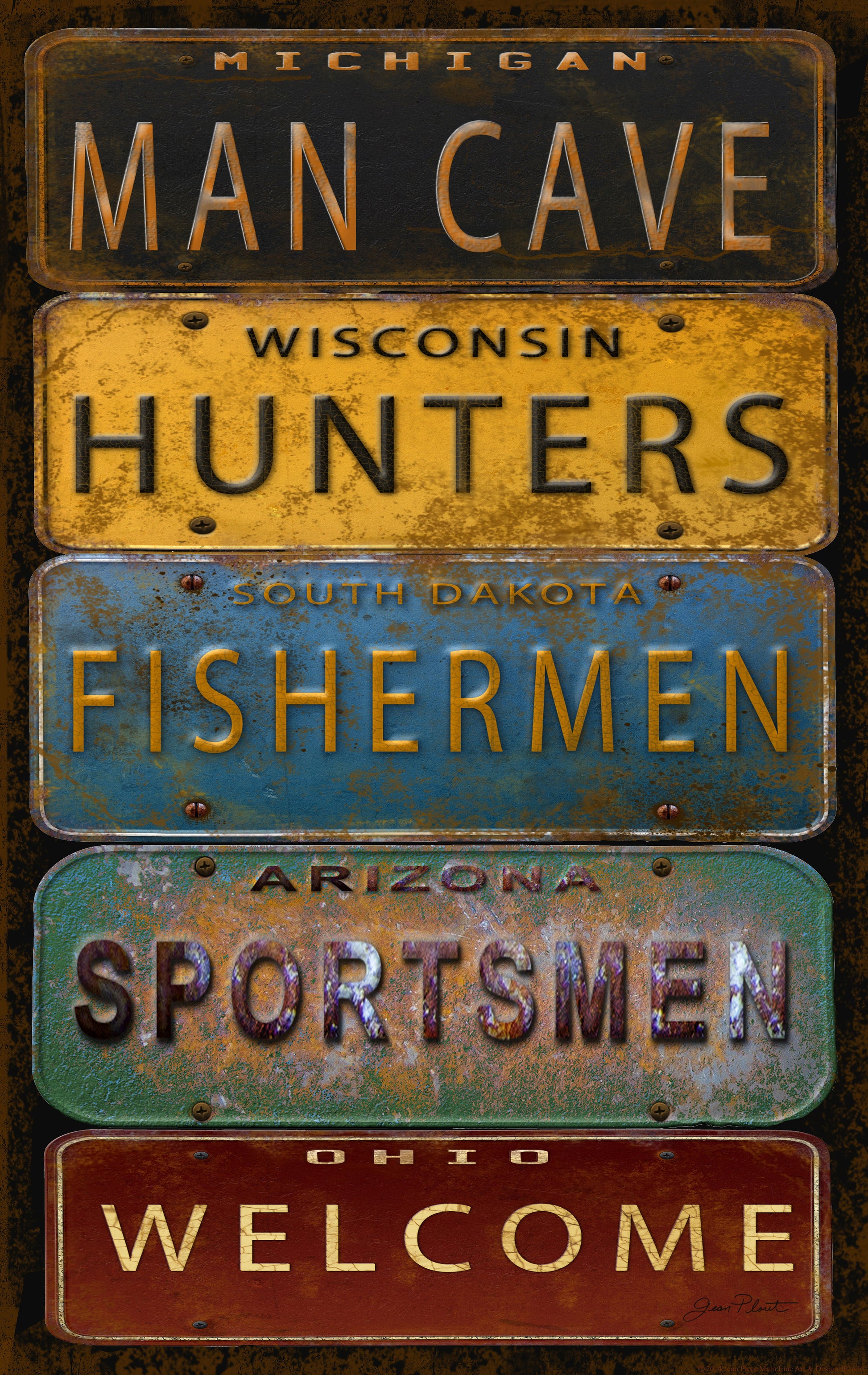Framed - License Plate Man Cave By Jean Plout - Orange