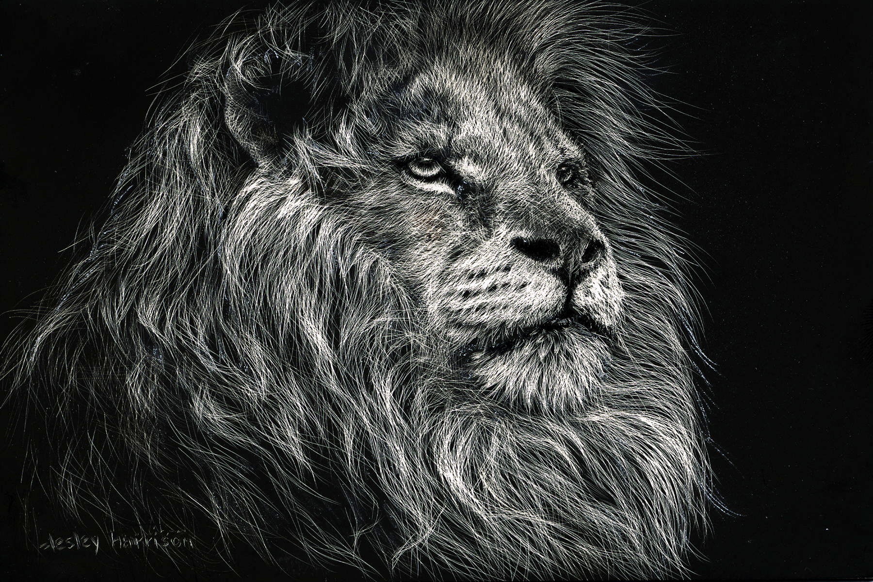 Framed Small - African Lion By Lesley Harrison - Dark Gray