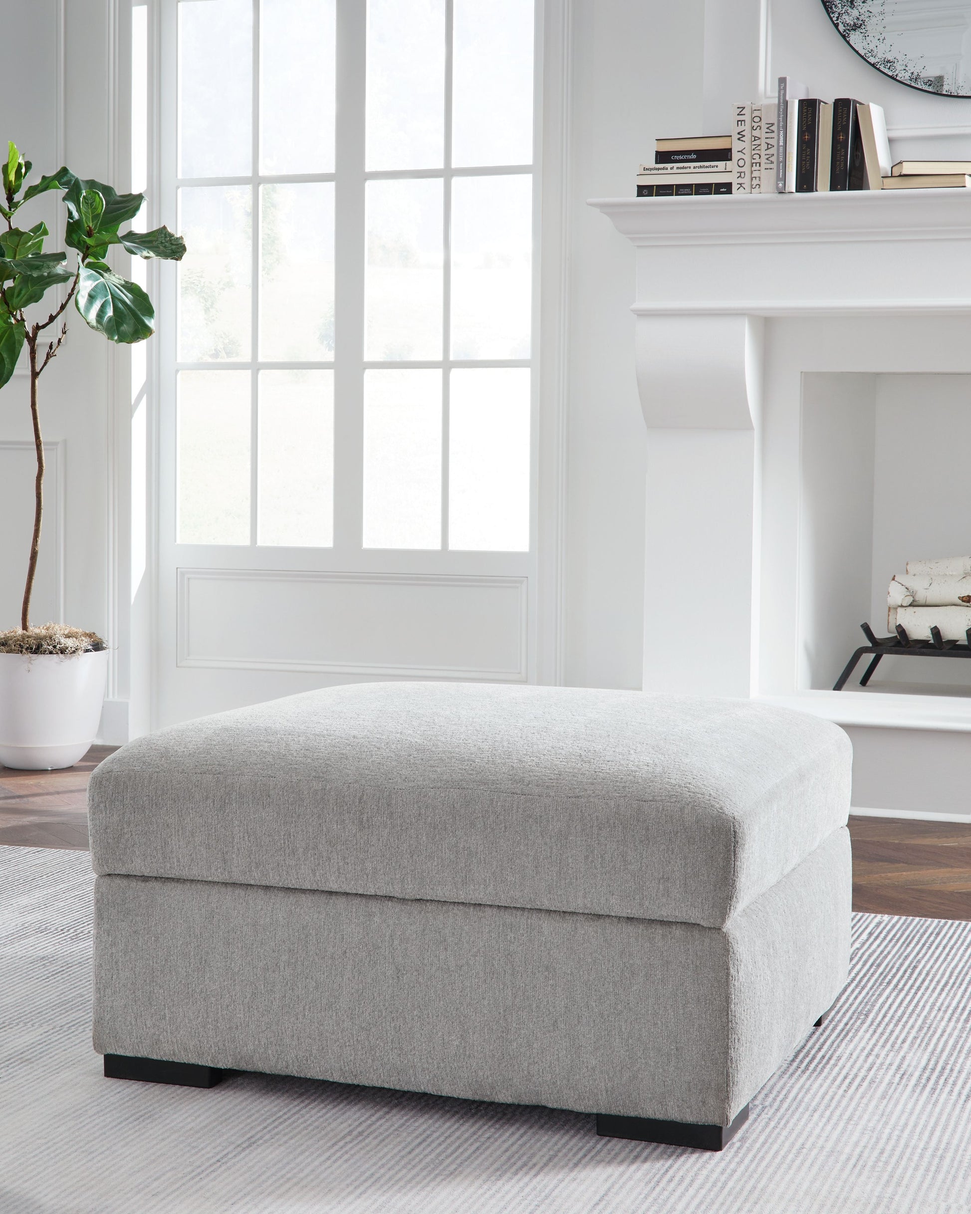 This ottoman's contemporary character and neutral hue make it a practical and stylish choice for high-traffic areas. Stressed about upkeep? No need to sweat spills and messes—the Next-Gen Nuvella™ performance fabric is soft and easy to clean, making it perfect for active households. This family-friendly ottoman is ideal for hosts with the most, providing easy-to-access storage that keeps essentials convenient but out of sight. Both durable and inviting, it's the only answer to a busy lifestyle.