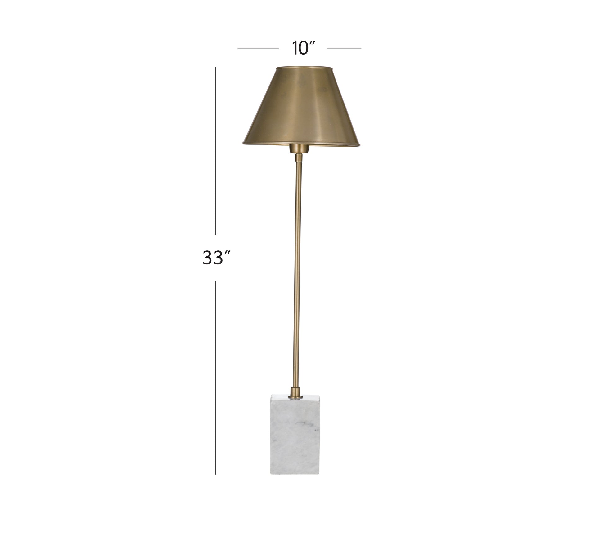 The Gold Table Lamp is a study in elegance and simplicity, constructed with a slender gold metal body that leads up to a matching gold lampshade. The base of the lamp is a robust block of white and gray marble, adding a luxurious and stable foundation to the design. The combination of refined metal and the classic beauty of marble makes this lamp a sophisticated addition to any space, blending seamlessly with both modern and traditional decor.
