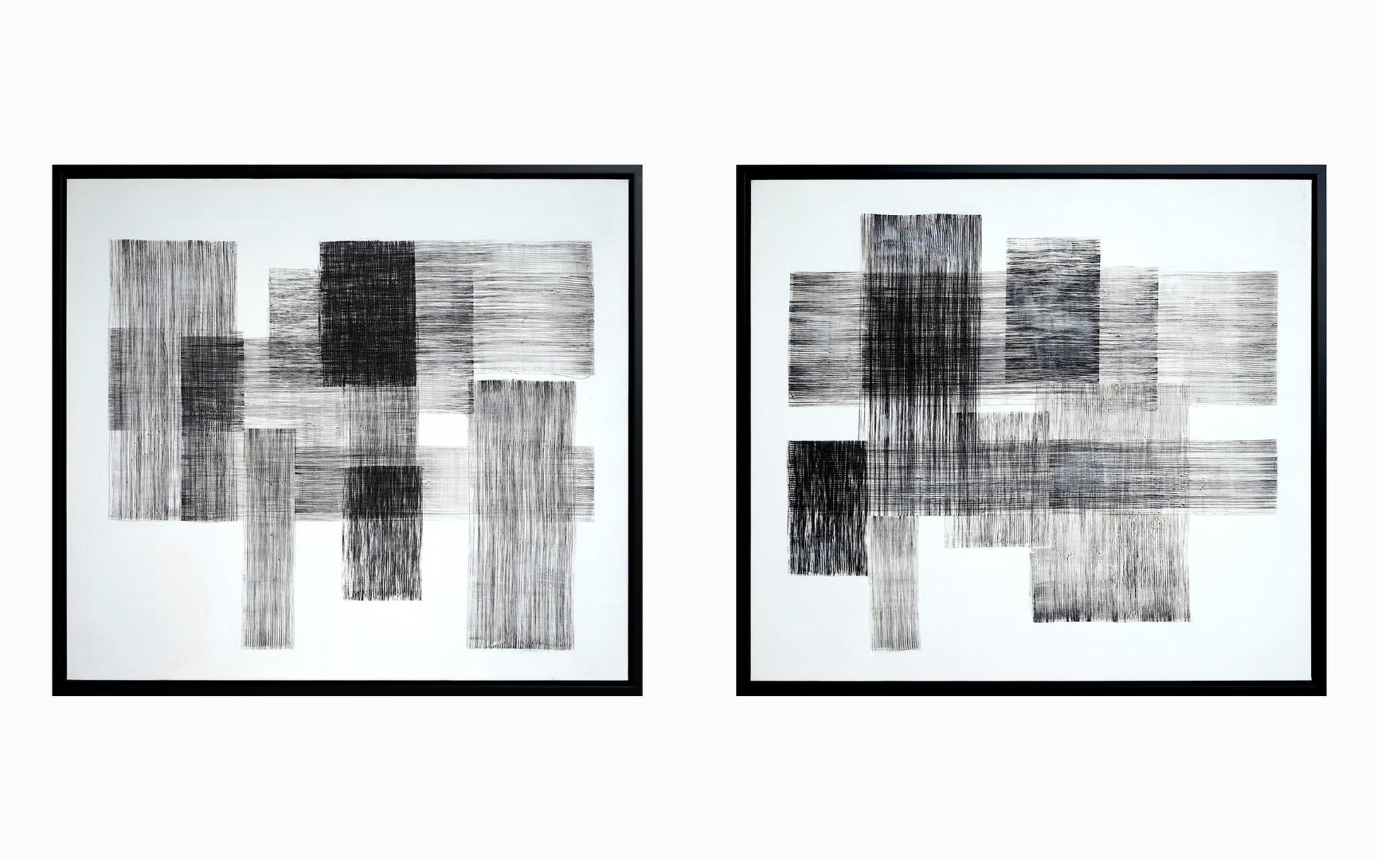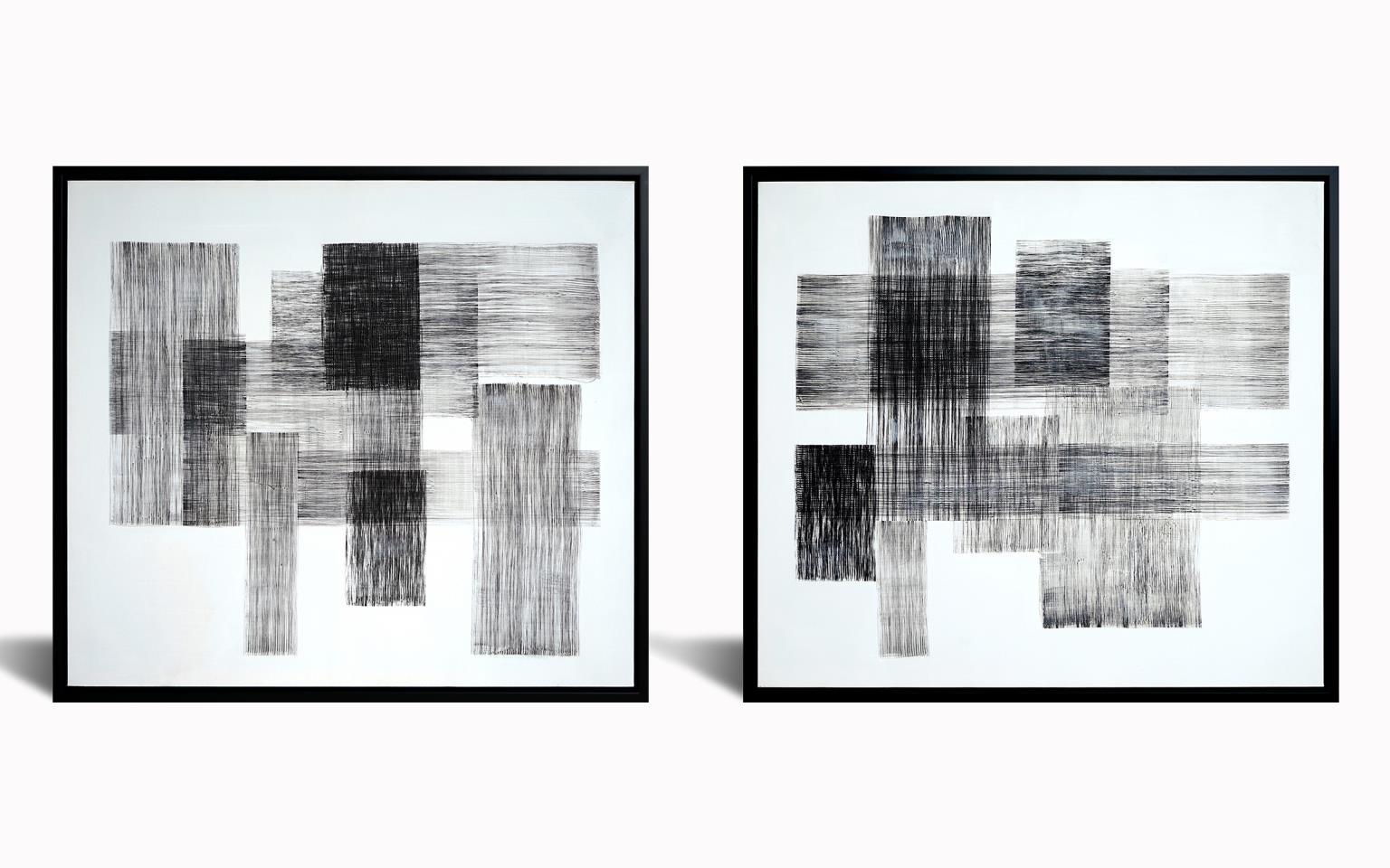 Hand Painted Textured Canvas in Frame 78x35 (Set of 2) - Dark Gray