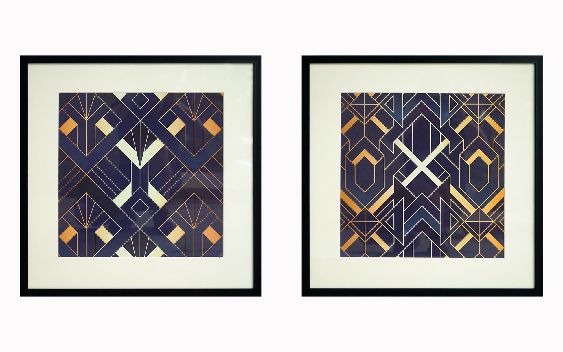 Hand Painted Textured Canvas in Frame (Set of 2) - Blue