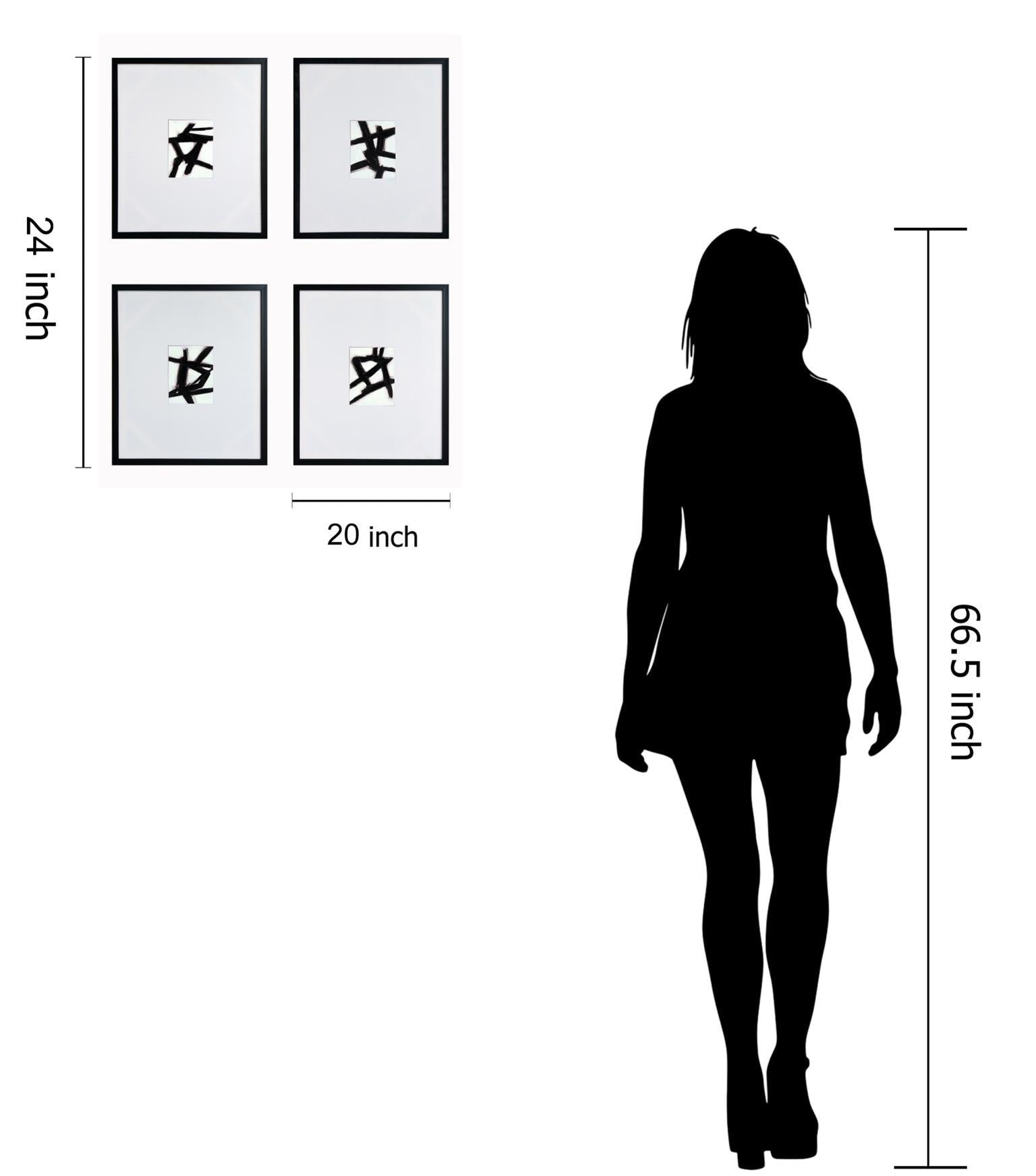 Hand Painted Textured Canvas in Frame (Set of 4) - Black