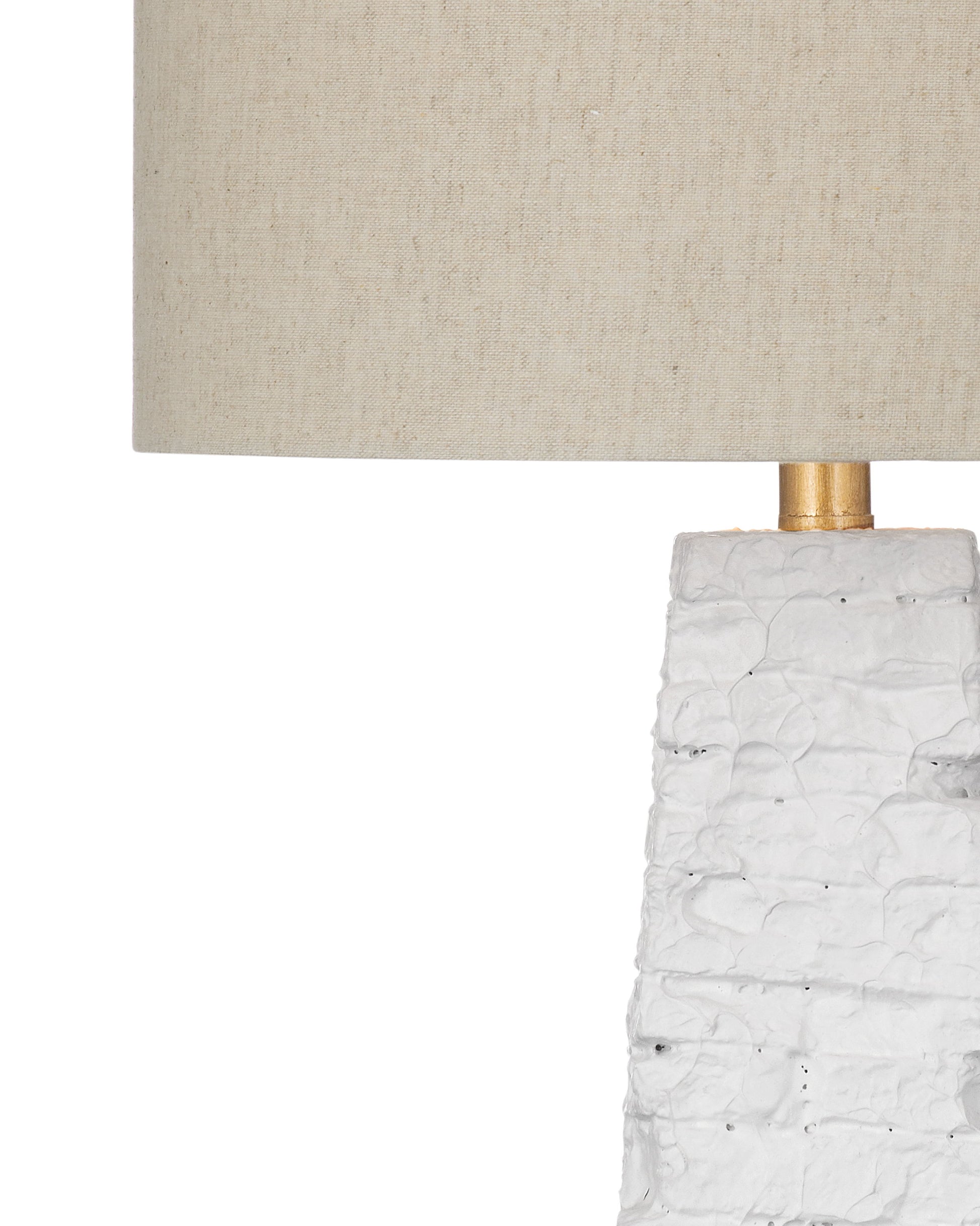 The Comoros Table Lamp presents a sophisticated design with an oatmeal-colored drum shade. Accompanied by a textured matte white finish, this lamp achieves a harmonious balance between classic aesthetics and modern allure. Meticulously crafted with attention to detail, the Comoros Table Lamp stands as a refined addition to interior spaces, seamlessly blending enduring design with a touch of contemporary sophistication. The textured matte white finish complements the lamp's body, creating a visually appealing contrast. With its stylish design and meticulous craftsmanship, the Comoros Table Lamp not only adds a modern edge to any room but also provides a soft and inviting illumination, making it a versatile and impactful contribution to interior decor.
