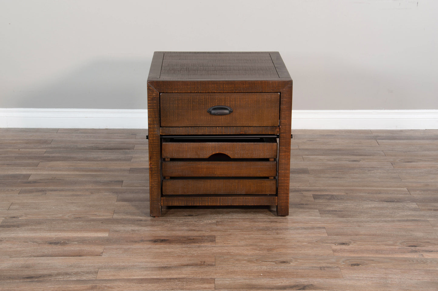 This Homestead occasional table set has beautiful rough sawn finish that makes it stand out. All pieces have nut head metal pipe accents and removable crates with metal bolt accents with decorative hardware.