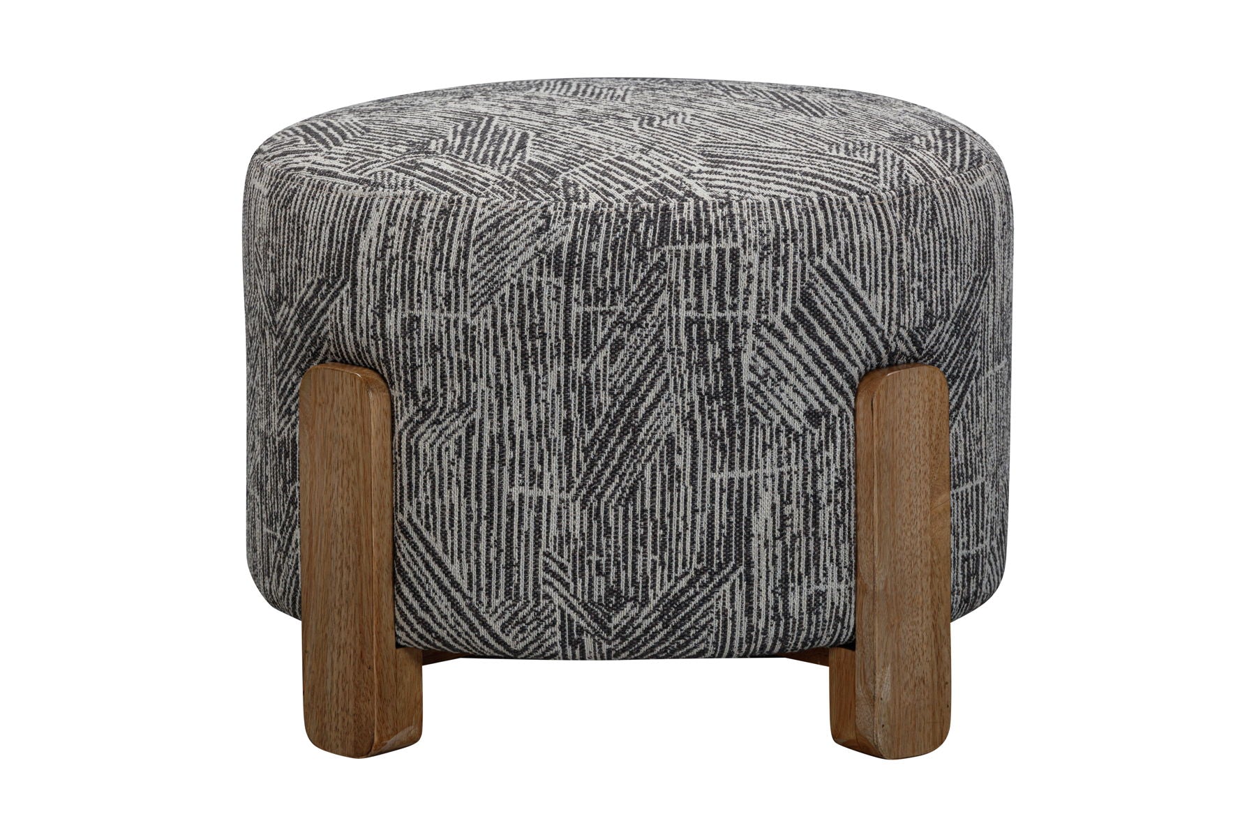 The Jasper accent ottoman features a blend of modern and traditional style influences with multi-functional use as ottoman and stool and featuring an exposed wood base in a natural mango finish with a salt-and-pepper jacquard fabric that is 100% polyester for durability. Finish: natural, salt-and-pepper. Material: solid and manufactured wood frame, deep plush padding. .