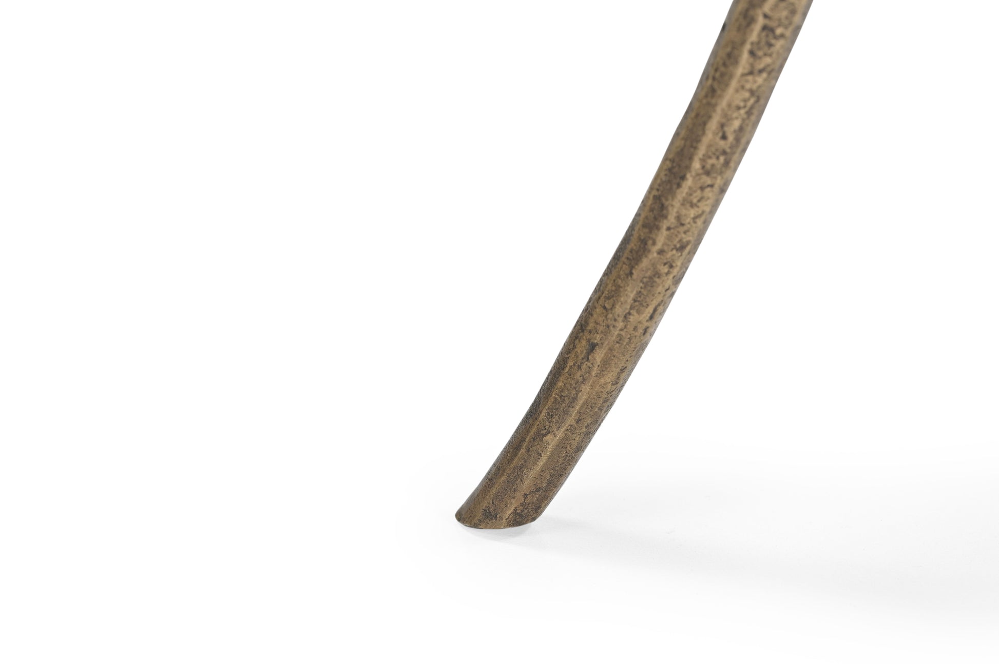 The Milo accent table embodies modern sophistication with its stunning emerald green marble top and antique brass-finished iron base. Its three-legged design, featuring hammered texture details, adds a touch of uniqueness to any room. Crafted from natural marble and hammered metal, each piece boasts its own distinctive characteristics, making it a truly one-of-a-kind addition to your space.