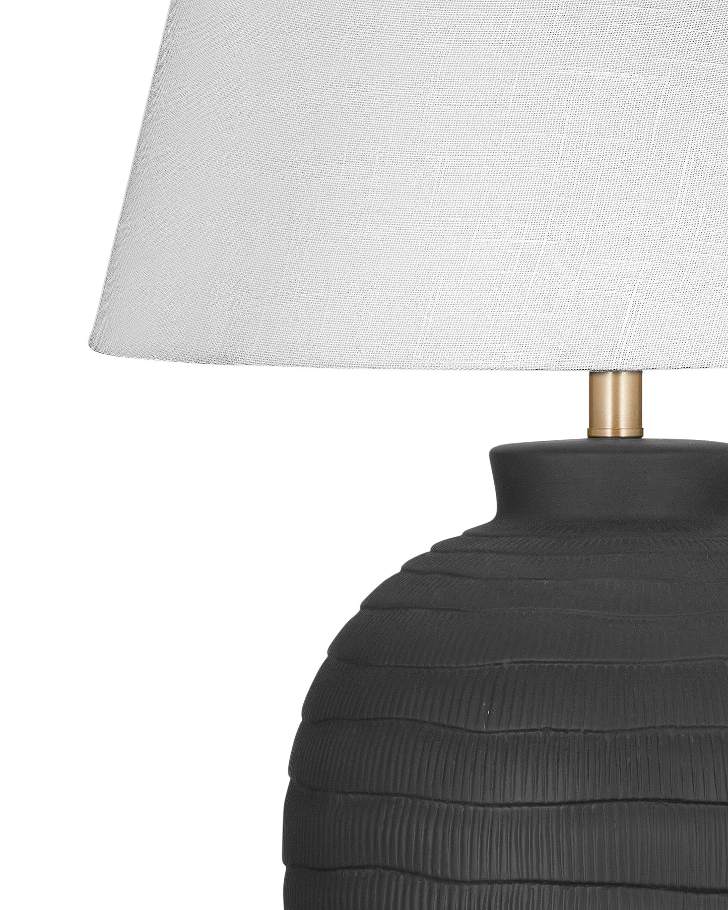 With its expertly crafted ceramic body featuring a matte black finish, the Ventraa Table Lamp showcases refined craftsmanship and a contemporary aesthetic. Complementing its design, a white tapered shade creates a striking contrast, contributing to the lamp's overall visual appeal. This thoughtfully designed lamp, distinguished by its sleek matte black exterior, introduces a touch of modern sophistication to any space. The white tapered shade not only enhances the lamp's aesthetic but also diffuses a soft and inviting glow, rendering the Ventraa Table Lamp a stylish and functional addition to interior decor.