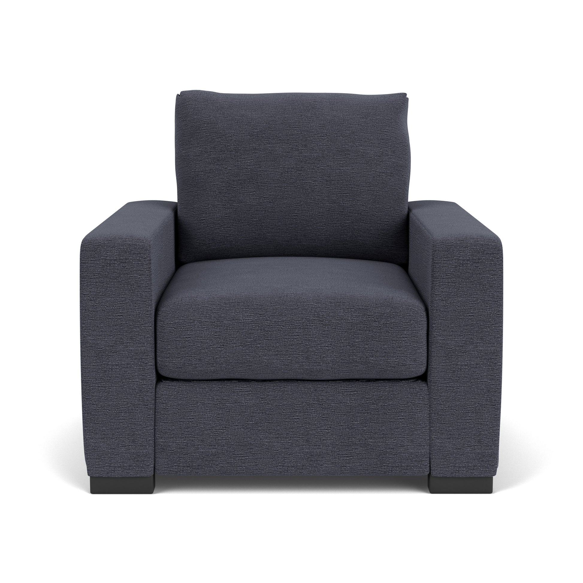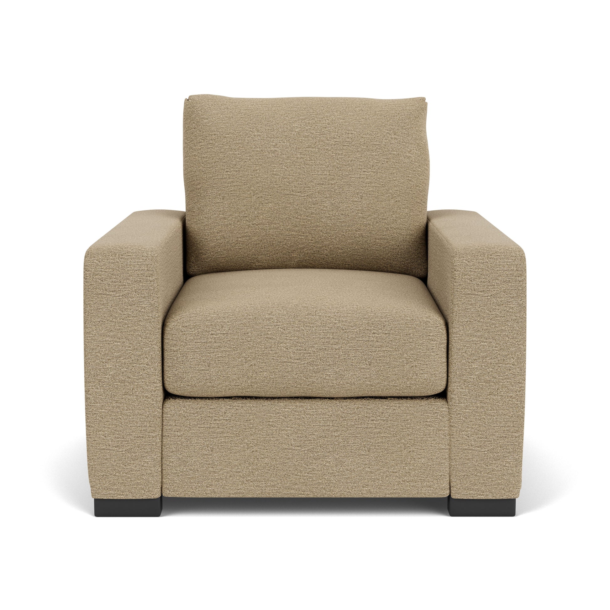Timeless Simplicity. The art of lounging gets elevated with the Oliver chair, designed for those who cherish comfort without compromising on style. With wide track arms that cascade down onto black recessed legs and a clean-lined silhouette, Oliver seamlessly blends a timeless transitional aesthetic with a casual and inviting feel. Customizable in your choice of fabric, Oliver is bound to be your ideal relaxation zone.