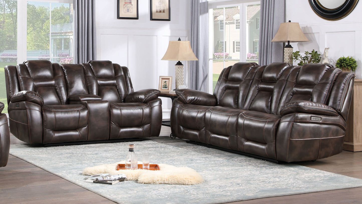 Start your engines with the Dual-Power Optimus motion group. Elaborate padding and stitching give your seat the look and feel of a race car right in your living room. Draped in beautiful leatherette, this group also has all the bells and whistles you crave with a Dropdown console that serves as the hub of your living room.