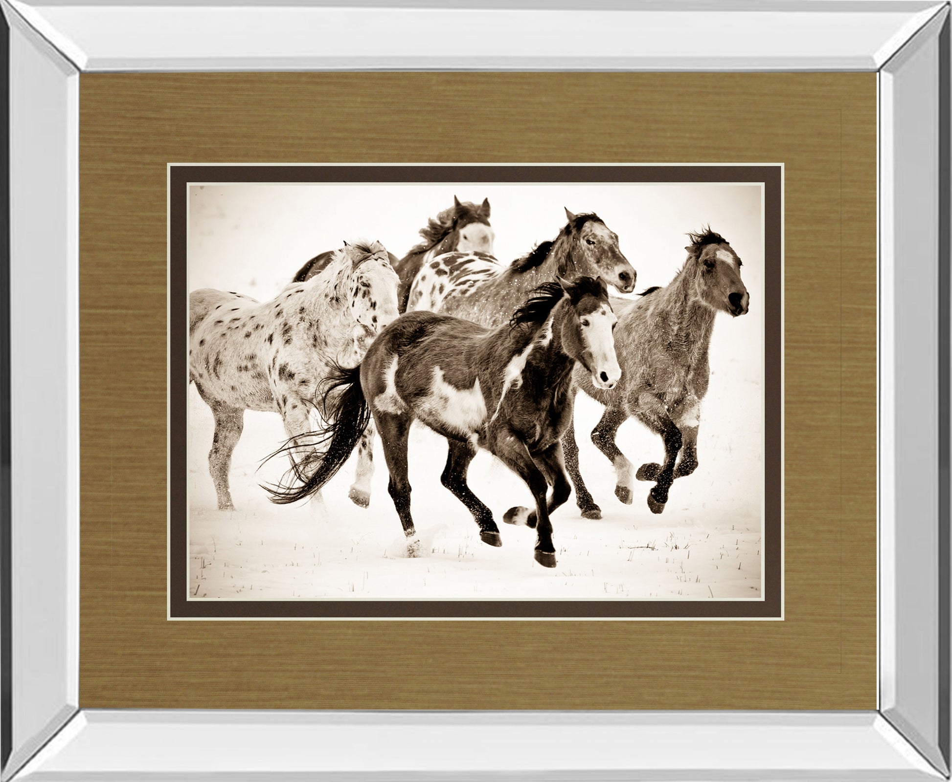 Painted Horses Run By Carol Walker - Mirror Framed Print Wall Art - Dark Brown