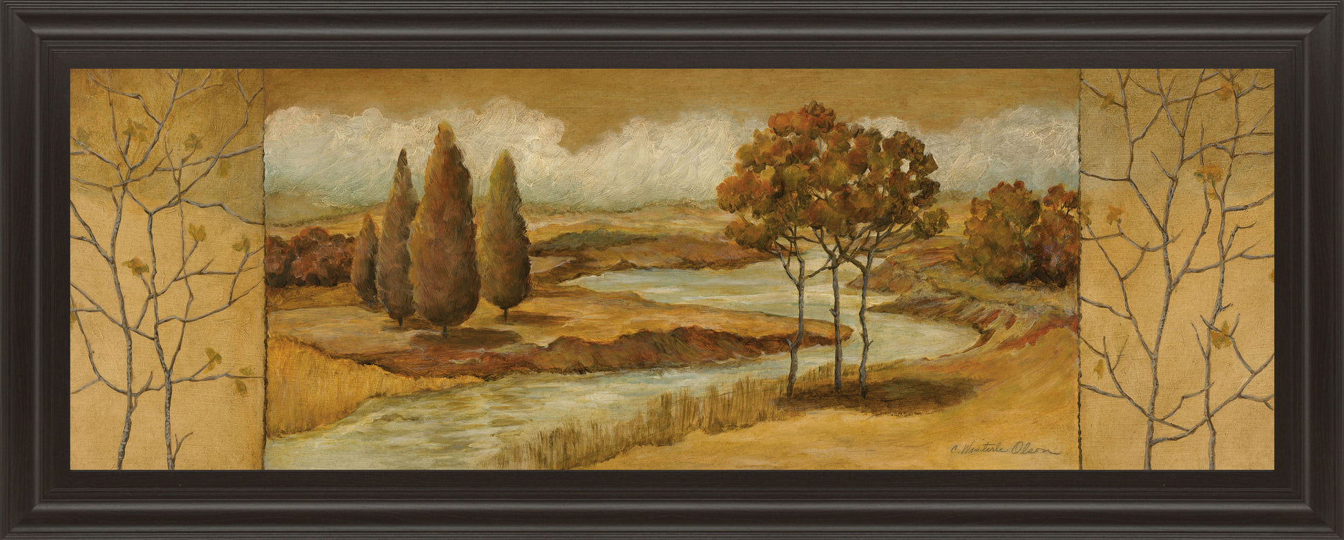 River Scene I - Framed Print Wall Art - Dark Brown