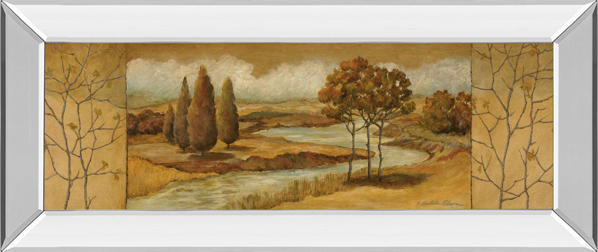 River Scene I - Mirror Framed Print Wall Art - Dark Brown