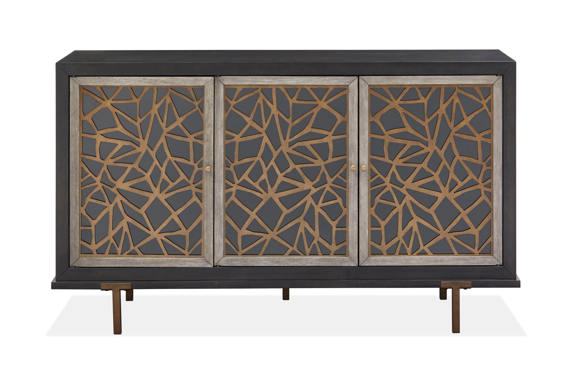 Distinctive in every way, the Ryker dining collection offers a refreshing take on dining in style. Its unique character combines a stunning mix of materials, including wood, metal and glass. It features a Nocturn Black and Coventry Grey finish that highlights its strong contemporary profiles and is accented with both black glass and clear mirror. A signature fractal pattern design element highlights select pieces and gives a distinctively modern edge to the group while metal ferrules in Aged Brass add a finishing touch to the legs. With exceptional beauty and comfort, Ryker is perfectly suited to take a dining room from unremarkable to truly remarkable.