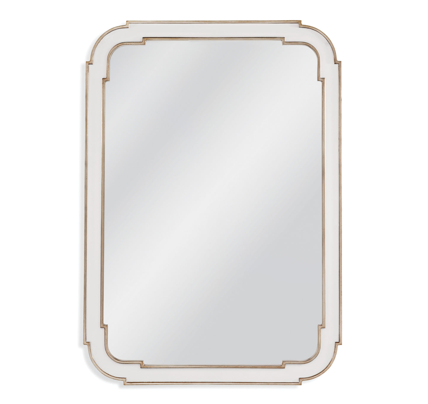 The Sasha Wall Mirror showcases white lacquer and raised silver leaf detailing, adding a touch of traditional glam/luxe elegance to any space. Crafted with attention to detail, this rectangular mirror seamlessly blends traditional and glam styles, making it a stunning focal point in any room. Elevate your decor effortlessly with the timeless charm and luxurious allure of the Sasha Wall Mirror.