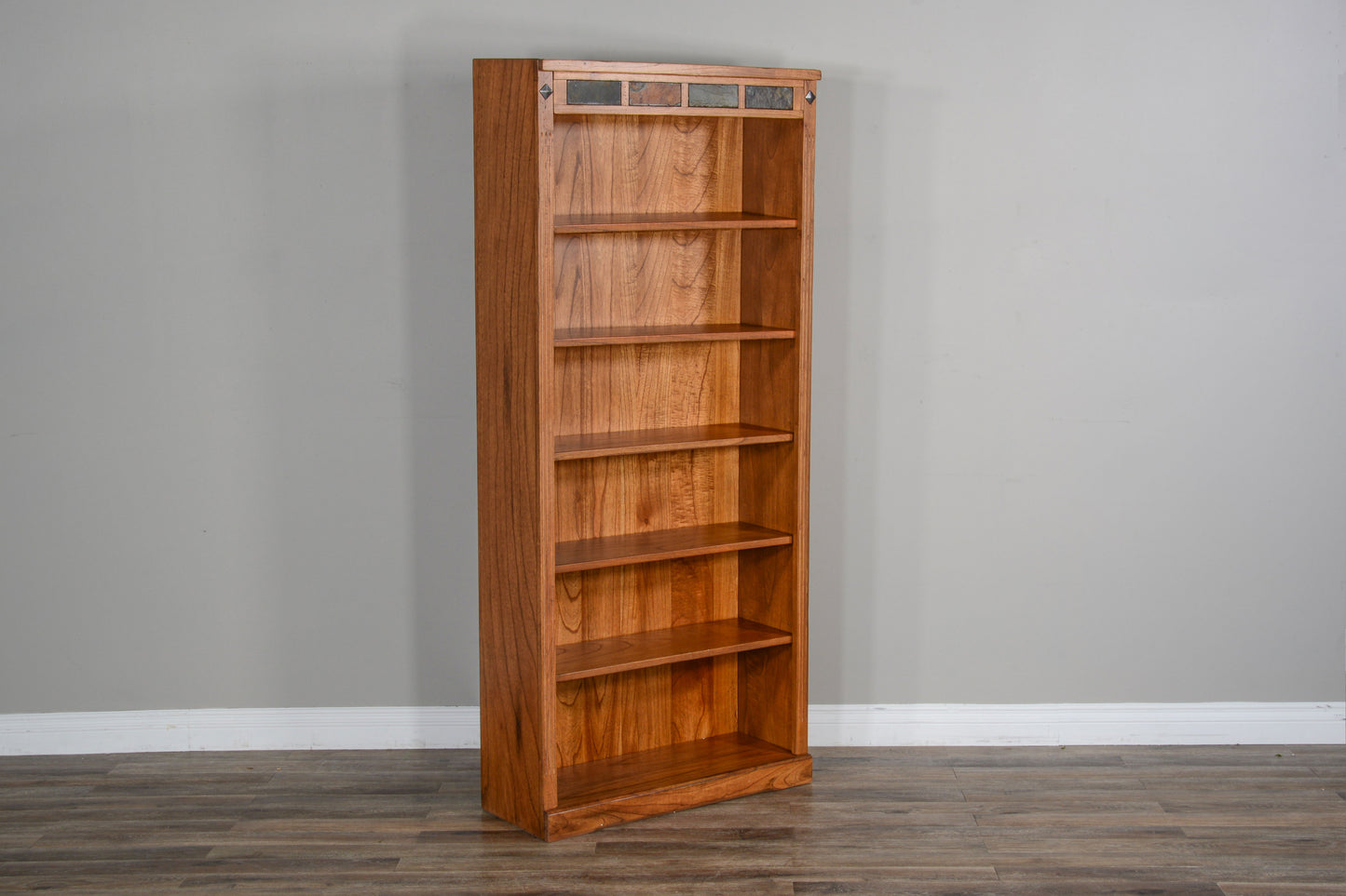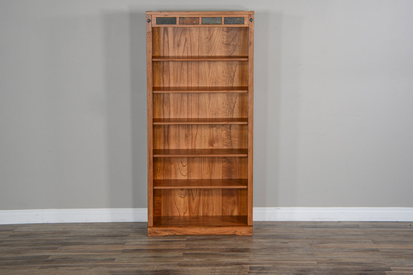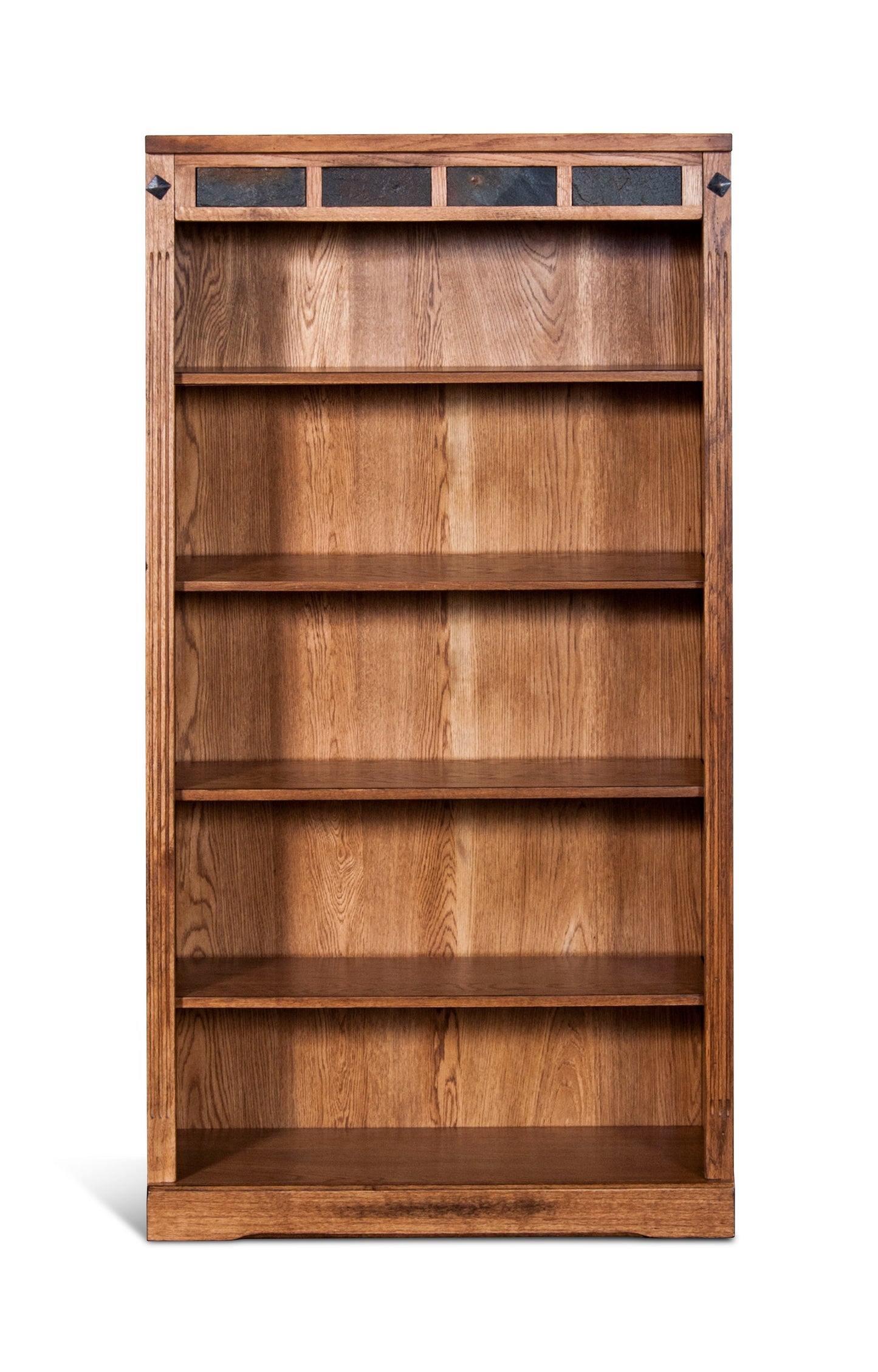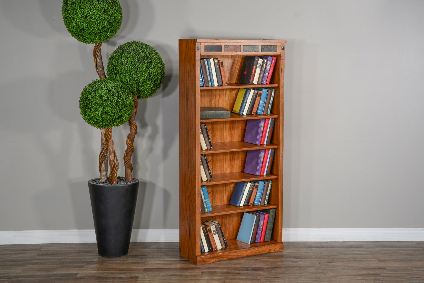 House your collection of first editions in the library or display favorite travel souvenirs in the den with this mindi solids and veneers bookcase, featuring decorative molding for a classic touch.