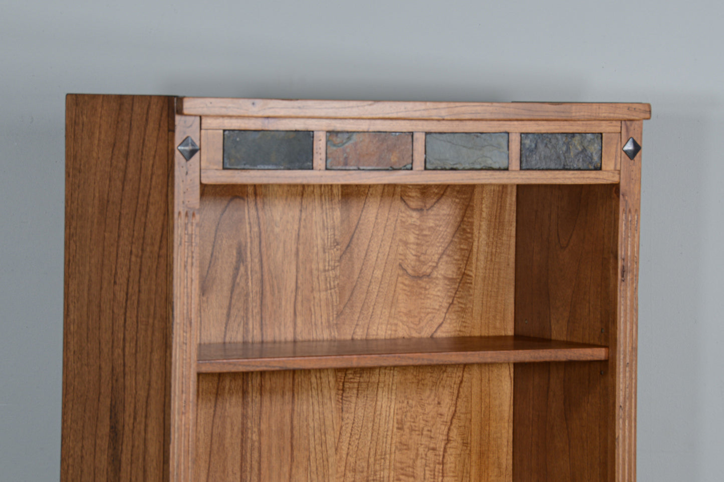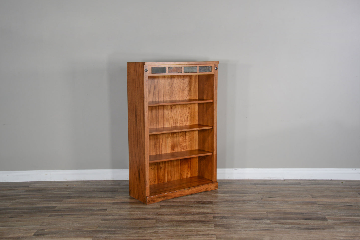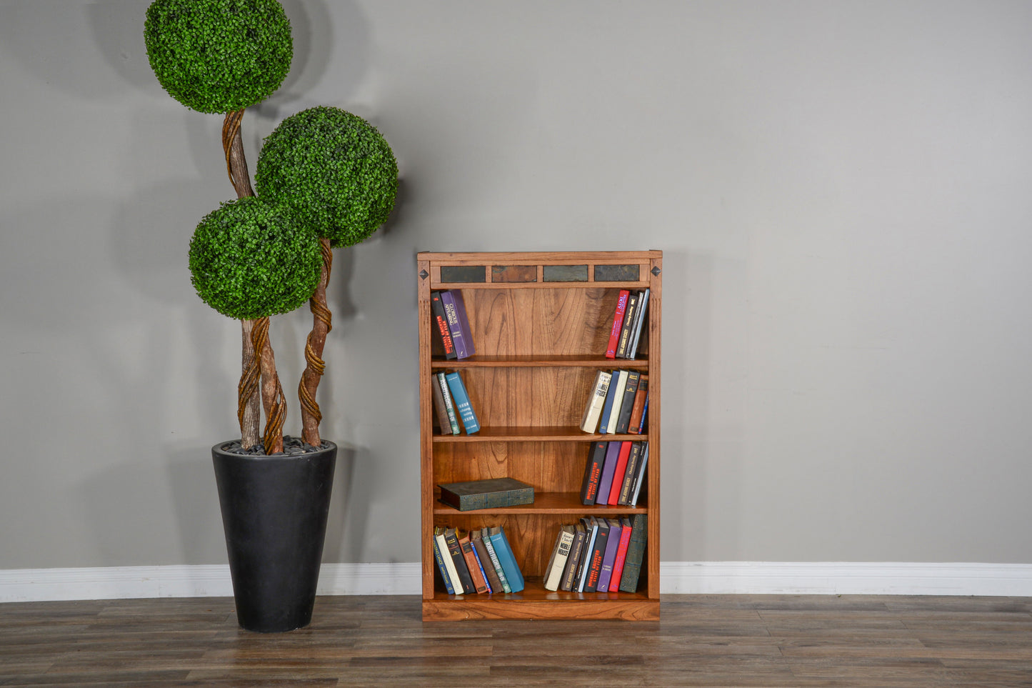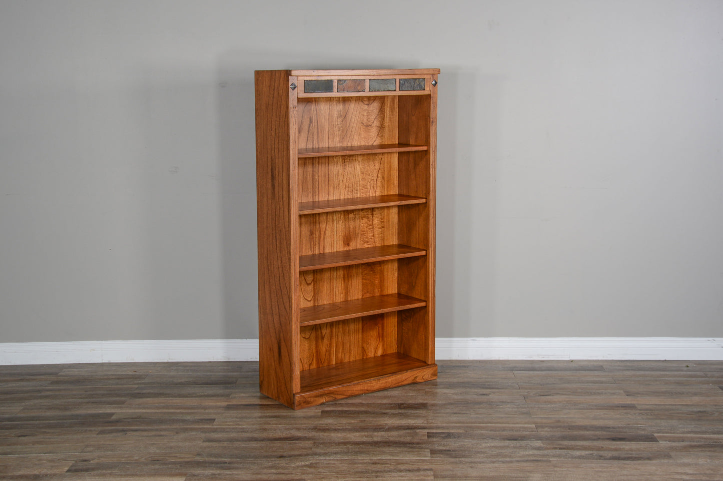 House your collection of first editions in the library or display favorite travel souvenirs in the den with this mindi solids and veneers bookcase, featuring decorative molding for a classic touch.