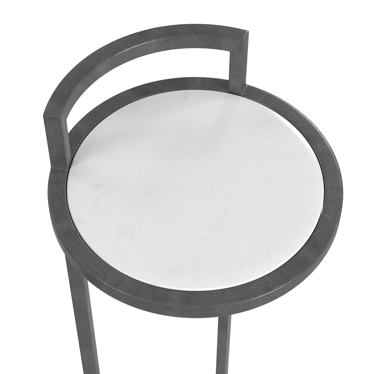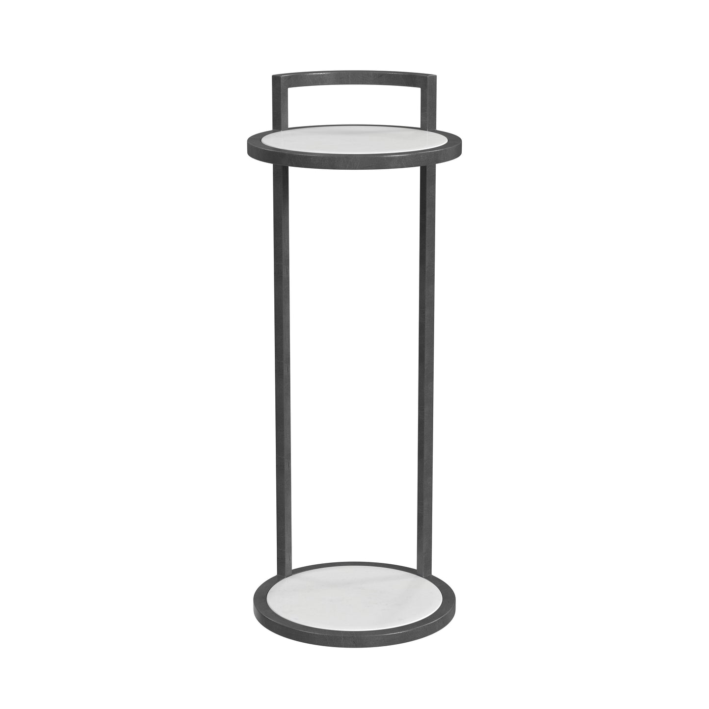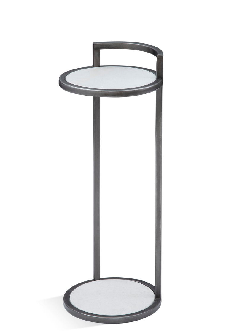 Metro modern styled martini table is perfect chair side accent. Features white marble inserts with black metal frame.