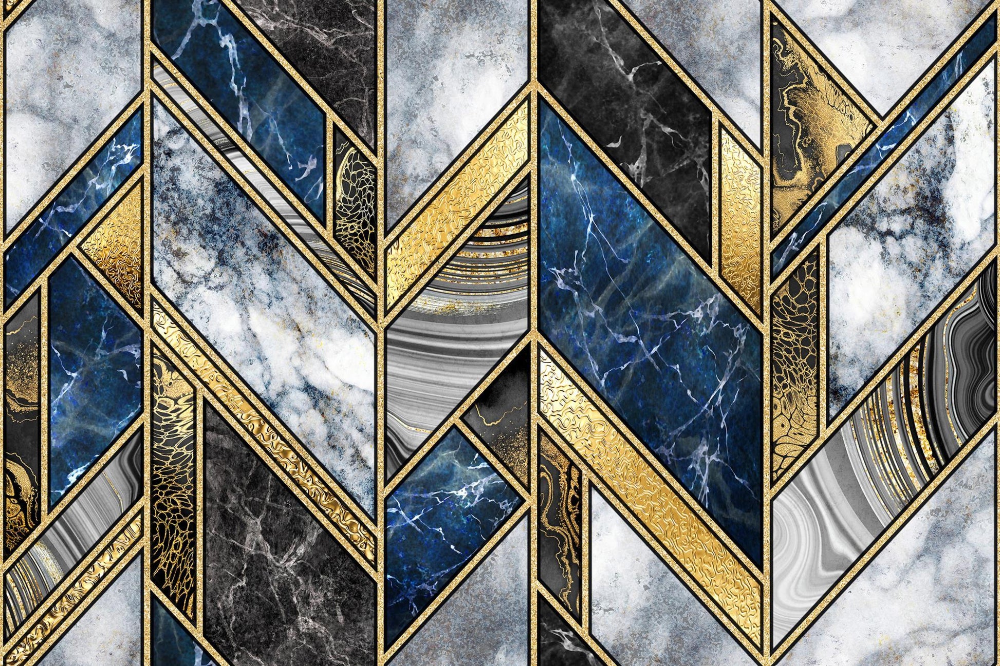 Temp Glass With Foil - Blue &n Gold Marble Patterns