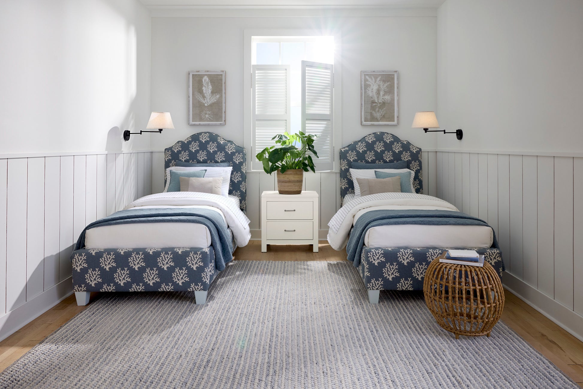 Tide & Timber - Twin - Upholstery Bed In Blue Coral Fabric - Soft White Maple