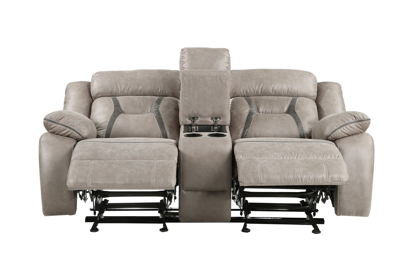 Comfortable and cozy, the Tyson manual reclining Console Loveseat provides a motion experience in a compact package. Reclining ends open at the flick of the button and glide when closed. The center console adds a comfortable armrest and provides valuable storage for remotes and valuables.