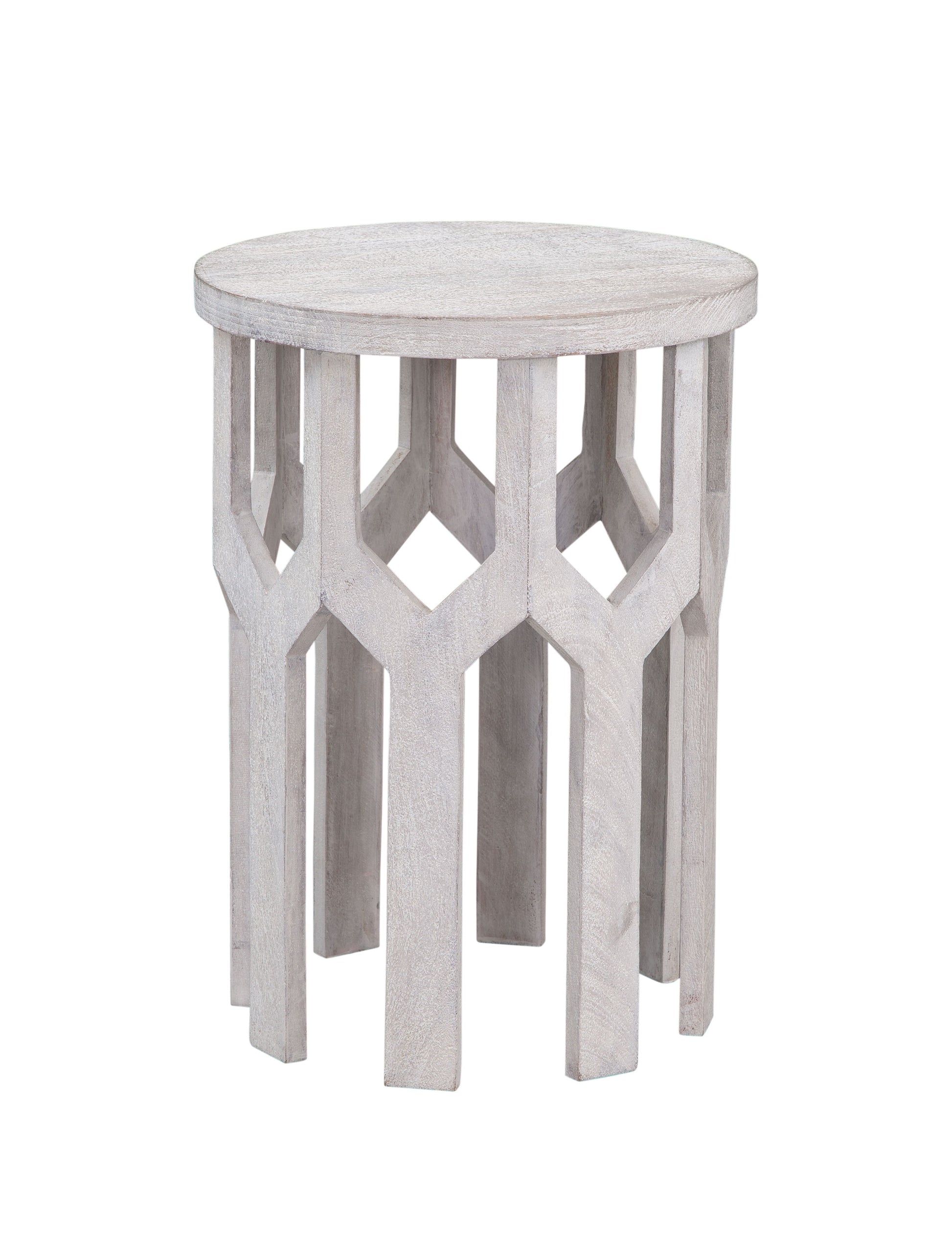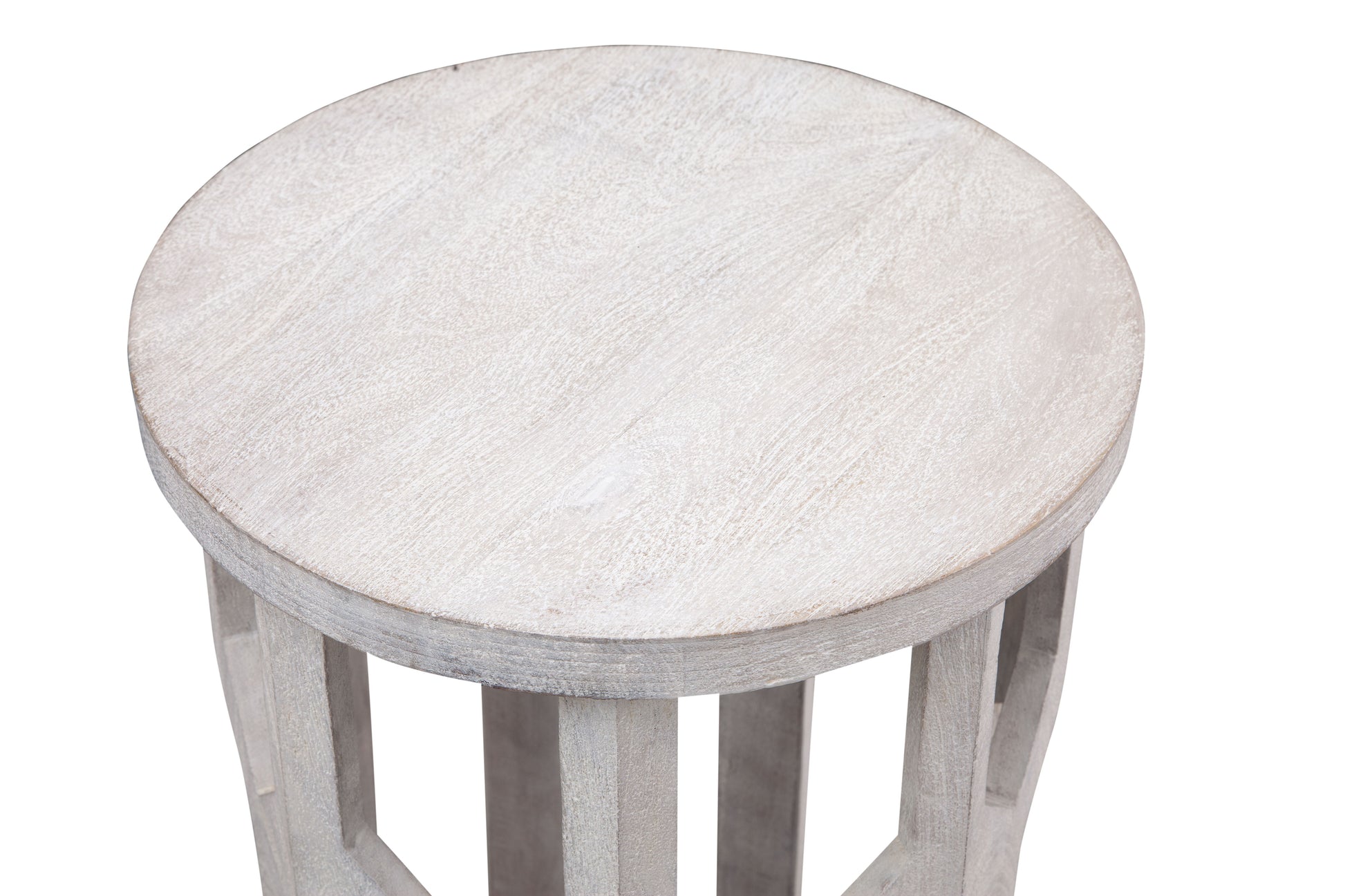The Loyd White Accent Table seamlessly blends coastal farmhouse style with enduring elegance. Made from solid mango wood in a calming sandblasted white-wash finish, this table adds a touch of character to your space.
