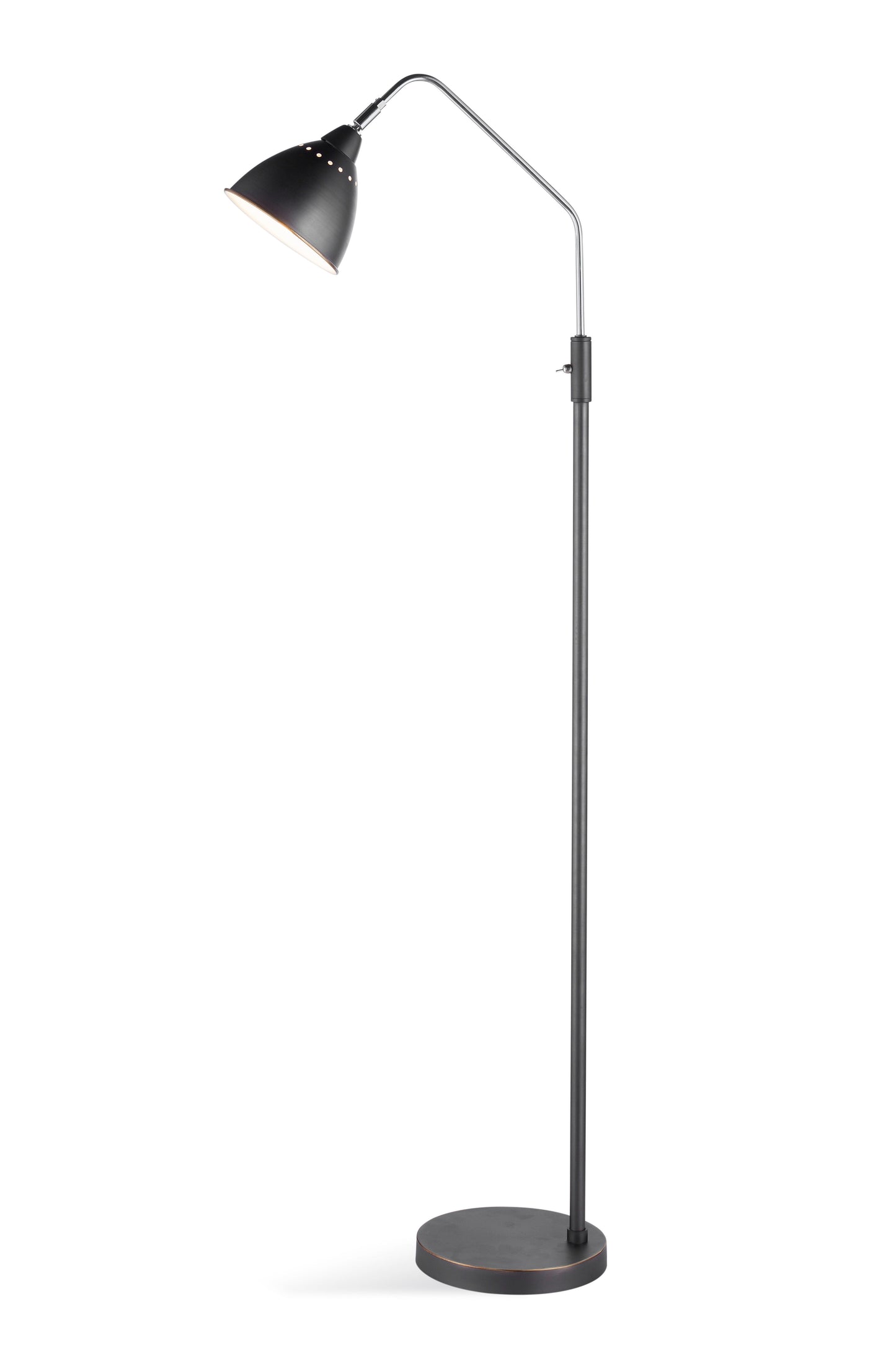 The Walden Floor Lamp embodies modern sophistication with its sleek design and industrial-inspired details. Crafted with a narrow metal column and finished in an elegant oil-rubbed bronze, this lamp exudes timeless style while adding a touch of contemporary flair to any room. Its extended arm offers versatility, allowing you to adjust the light to suit your needs.
