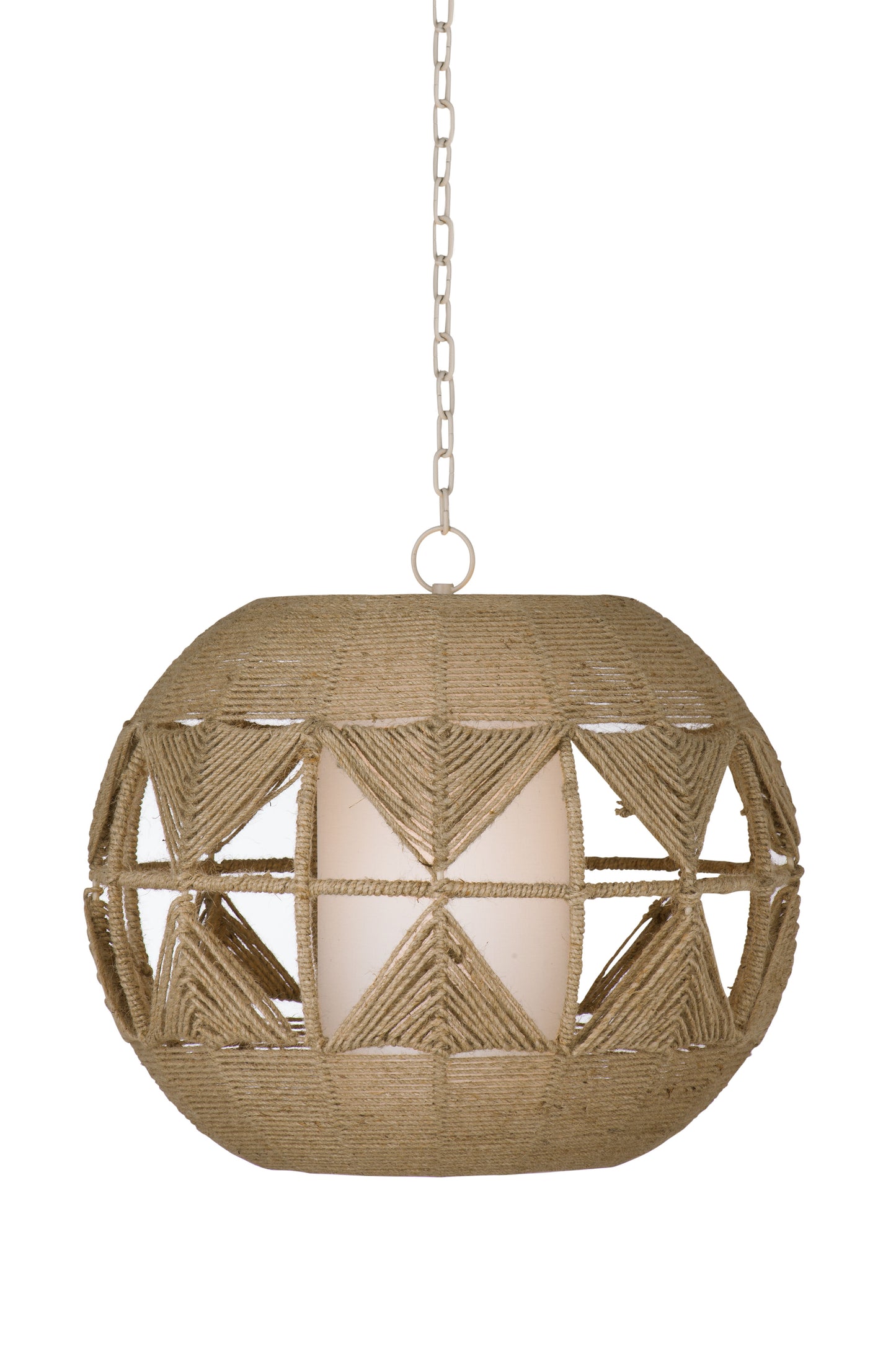 The Woven Pendant Lamp is crafted of woven rattan and jute with an interior shade to create this unique round pendant lamp. Material: iron, rattan, fabric, jute. Weight: 7. 5 LBS. Wattage: 25W Max. Bulb Type: A. Socket Type: E26. The hand crafted details produced by a skilled artist lends itself to a unique technique and will vary slightly. COO: India.